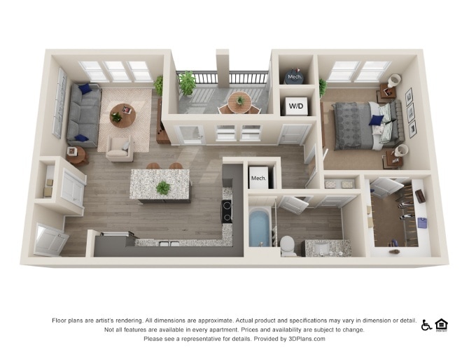 1 Dormitorio, 1 Baño, 849 pies²Disponible AhoraGalería del Modelo