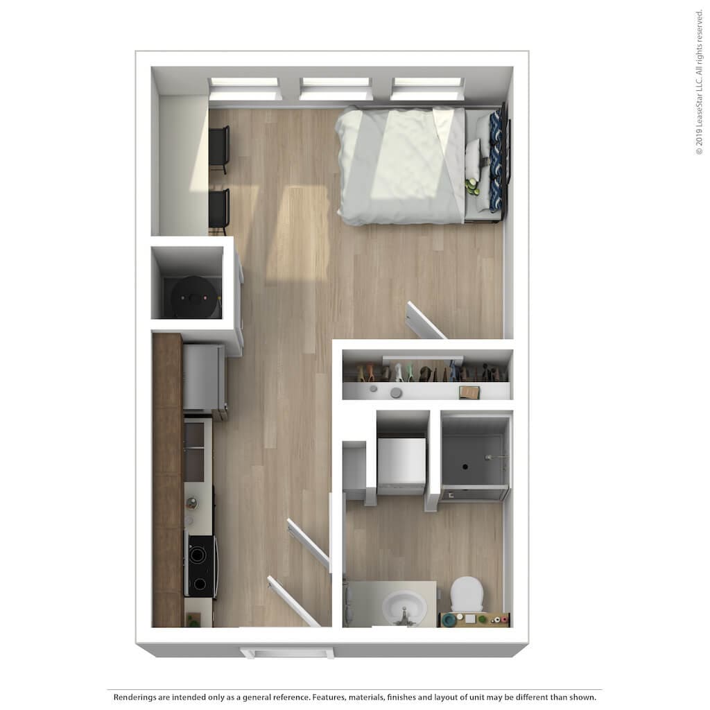 Studio - Plano 2 Unidad de apartamento: PrivateModelo de apartamento: Studio$1,515Estudio, 1 Baño, 351 sq ftDisponible August 15, 20261 Dormitorio