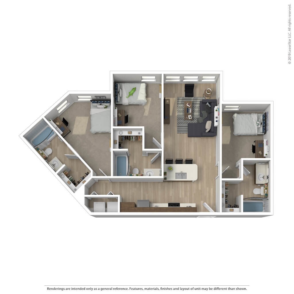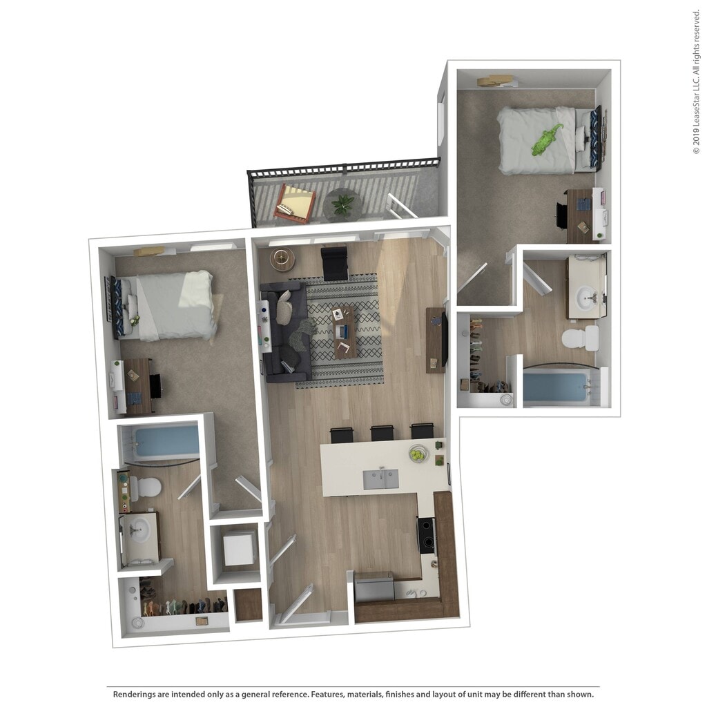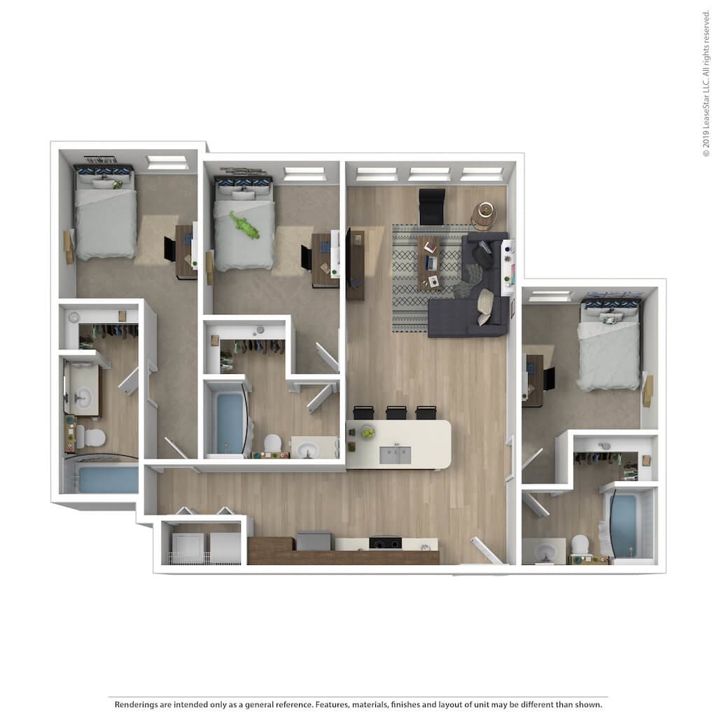 Modelo de apartamento: 3BR/3BA - C3$1,0903 Dormitorios, 3 Baños, 1082 sq ftDisponible August 15, 2026![]()