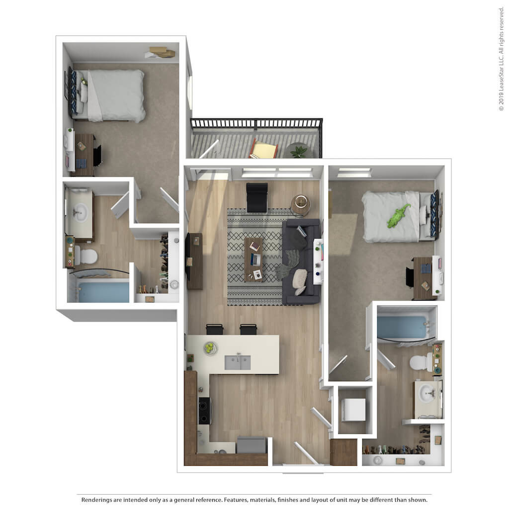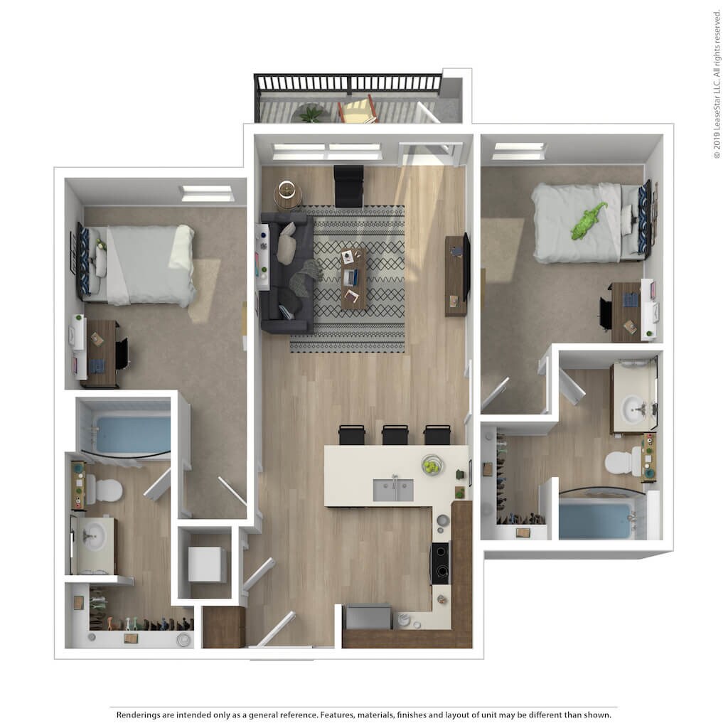 2BR/2BA - B1 - Plano 2 Unidad de apartamento: PrivateModelo de apartamento: 2BR/2BA - B1$1,2502 Dormitorios, 2 Baños, 847 sq ftDisponible August 15, 20263 Dormitorios