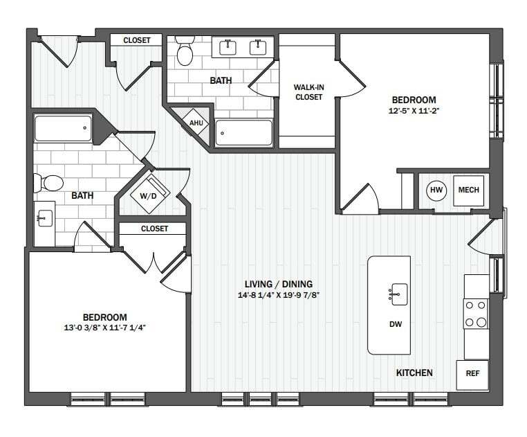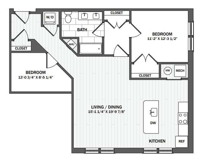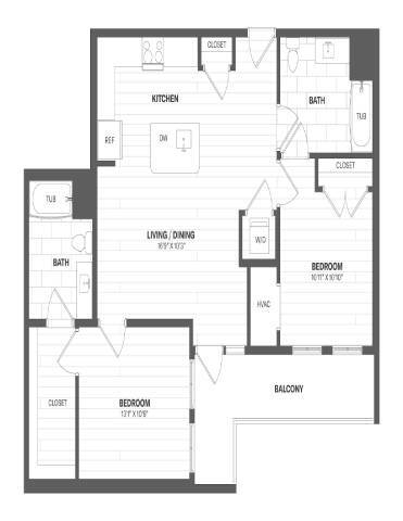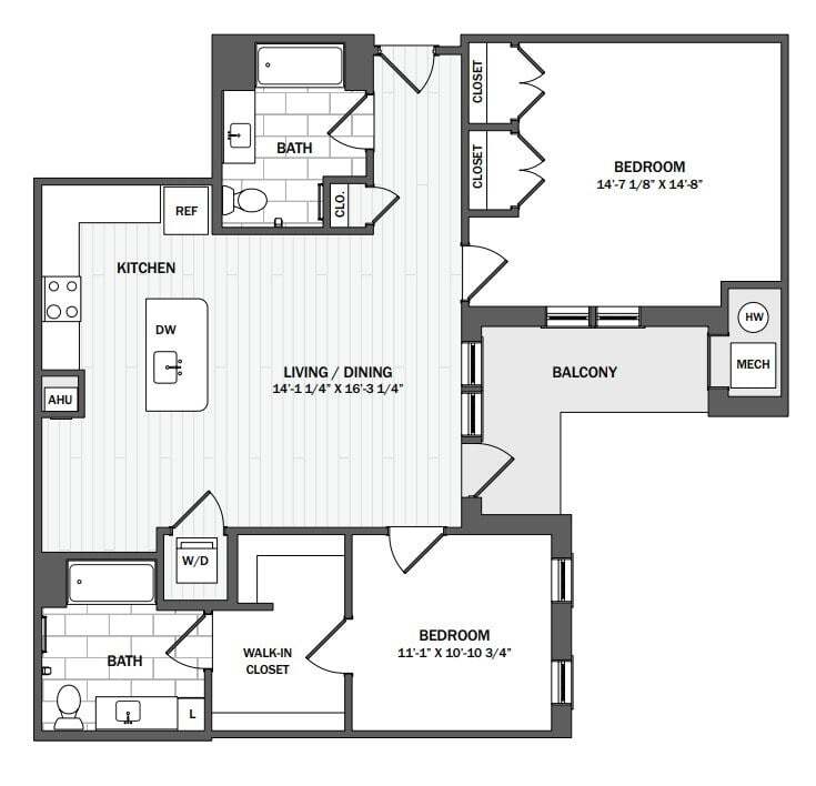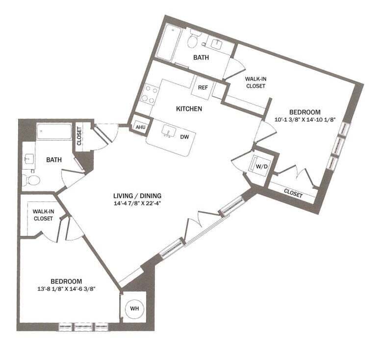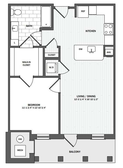 1 Dormitorio, 1 Baño, 763 pies²Disponible AhoraGalería del Modelo