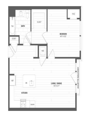 1 Dormitorio, 1 Baño, 799 pies²Disponible January 7, 2026Galería del Modelo
