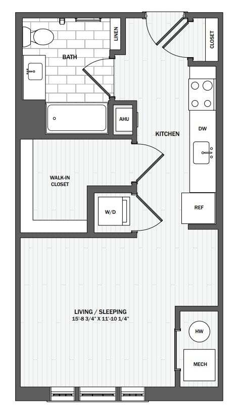 Modelo de apartamento: Studio-X1Llame para PreciosEstudio, 1 Baño, 494 sq ftNo DisponibleLos planos de la planta son una interpretación artística. Todas las dimensiones son aproximadas. Los tamaños o el detalle del producto real y sus especificaciones pueden variar. No todas las características están disponibles en todos los hogares para rentar. Los precios y la disponibilidad están sujetos a cambios. El alquiler que se muestra es mensual. Se pueden aplicar ciertos cargos, por ejemplo, entrega de paquetes, recolección de basura, agua, servicios, etc. Depositos varian. Consulta a un representante para conocer detalles.