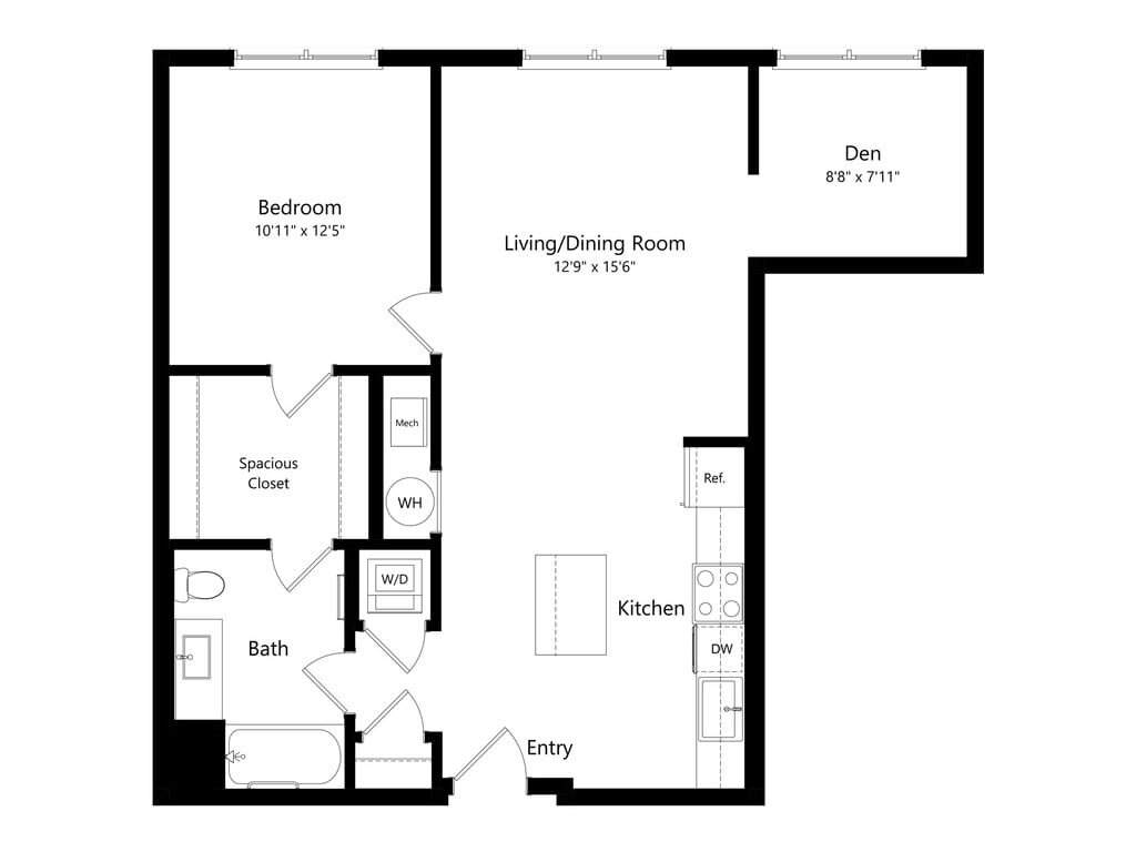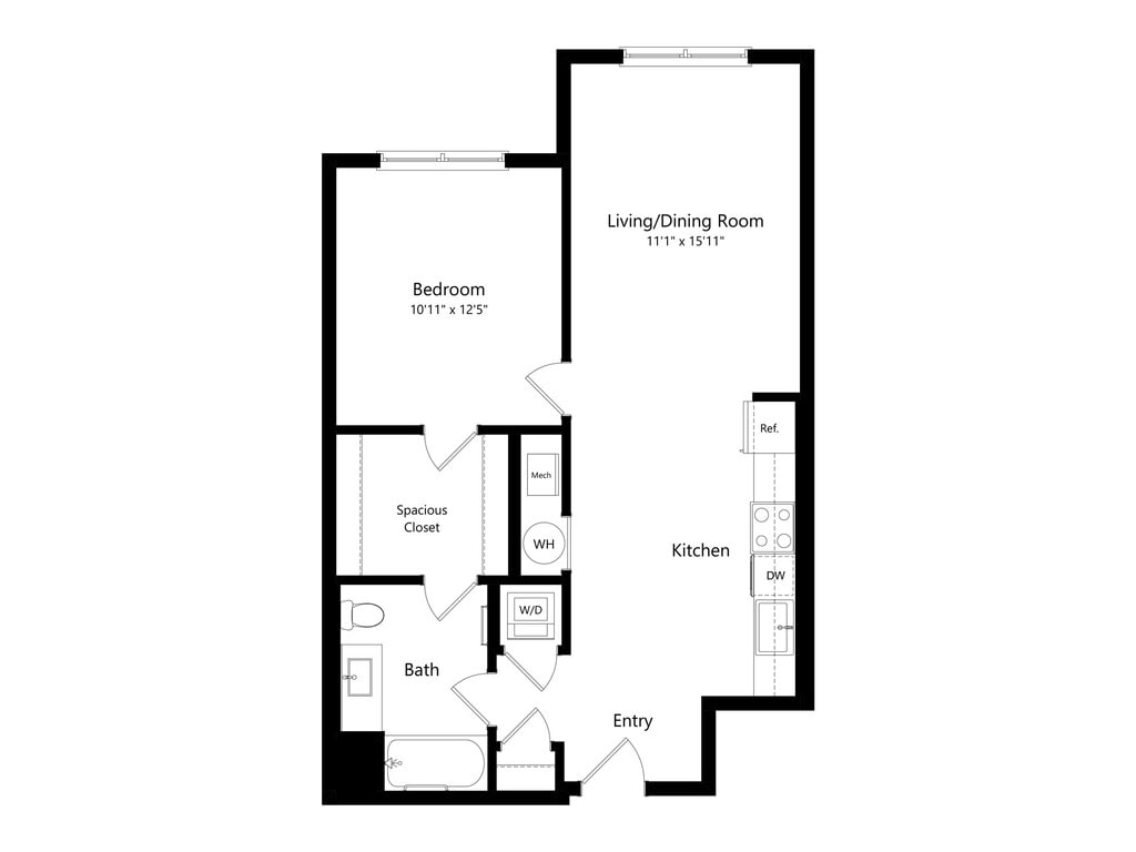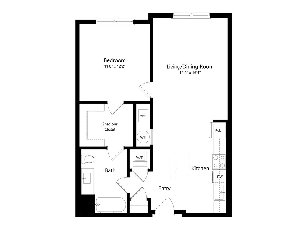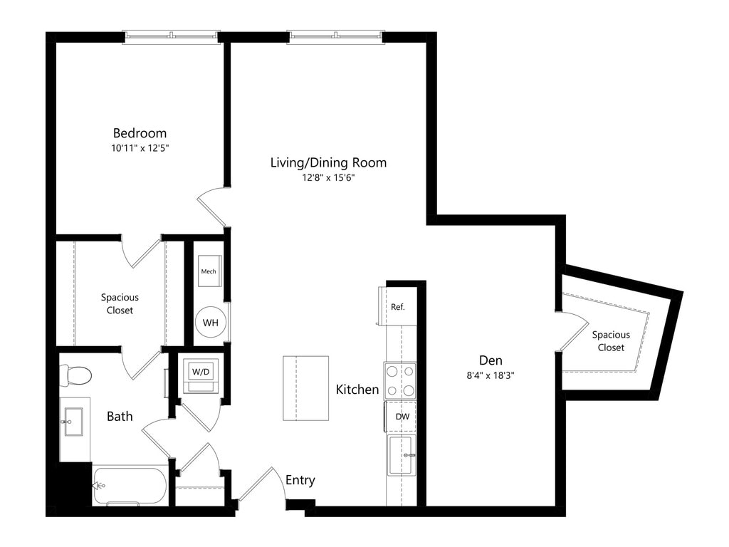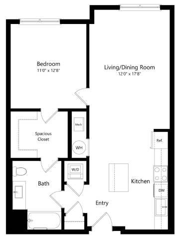 1 Dormitorio, 1 Baño, 561 pies²Disponible AhoraGalería del Modelo