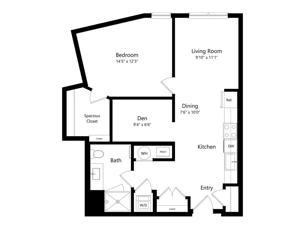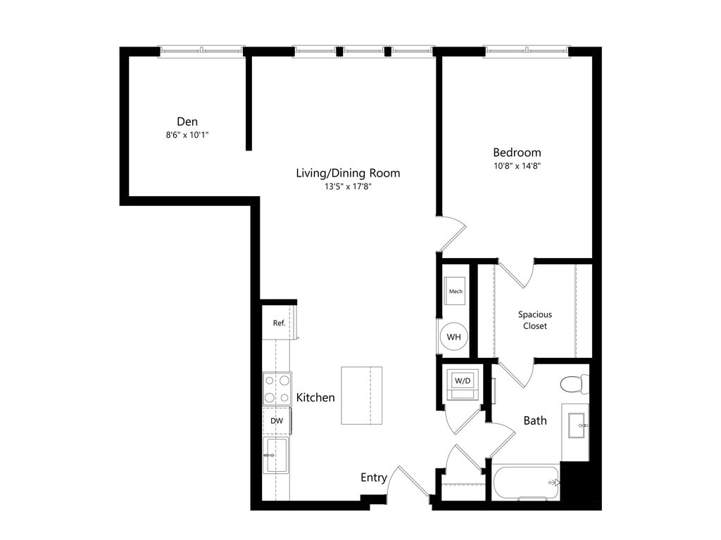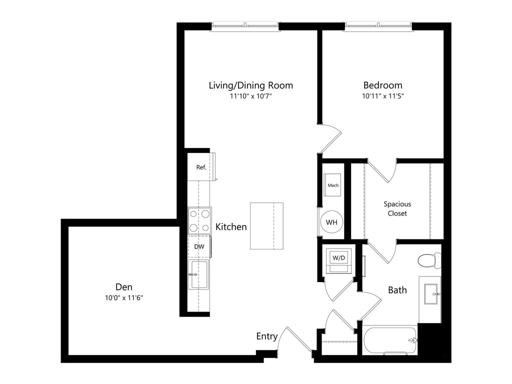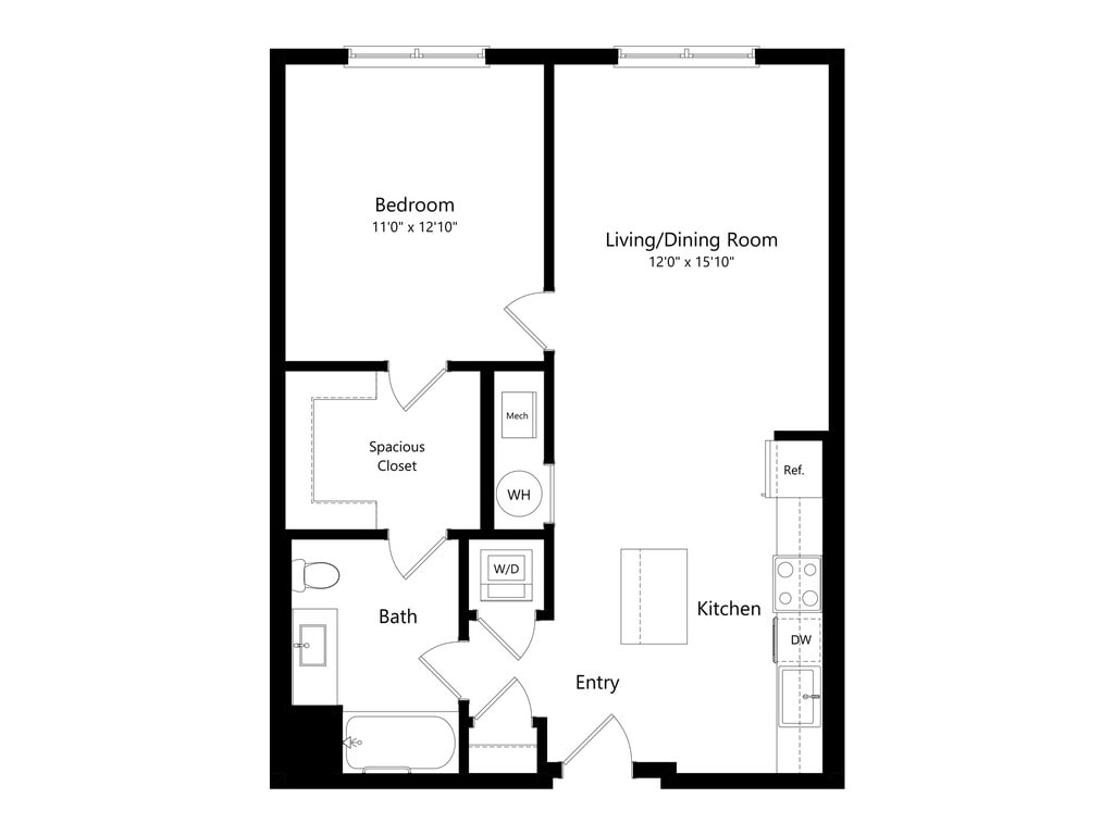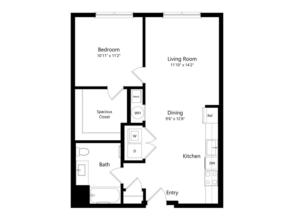 1 Dormitorio, 1 Baño, 561 pies²Disponible AhoraGalería del Modelo