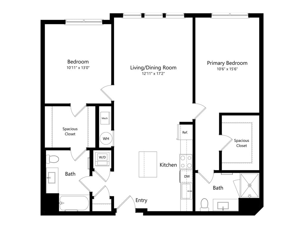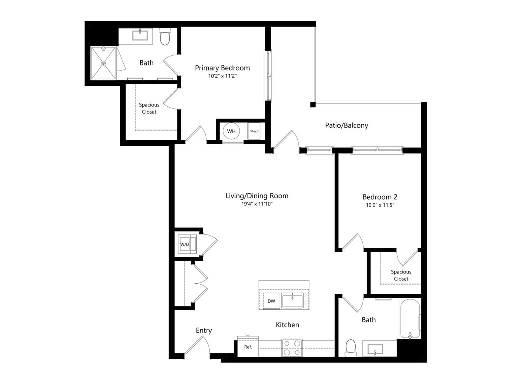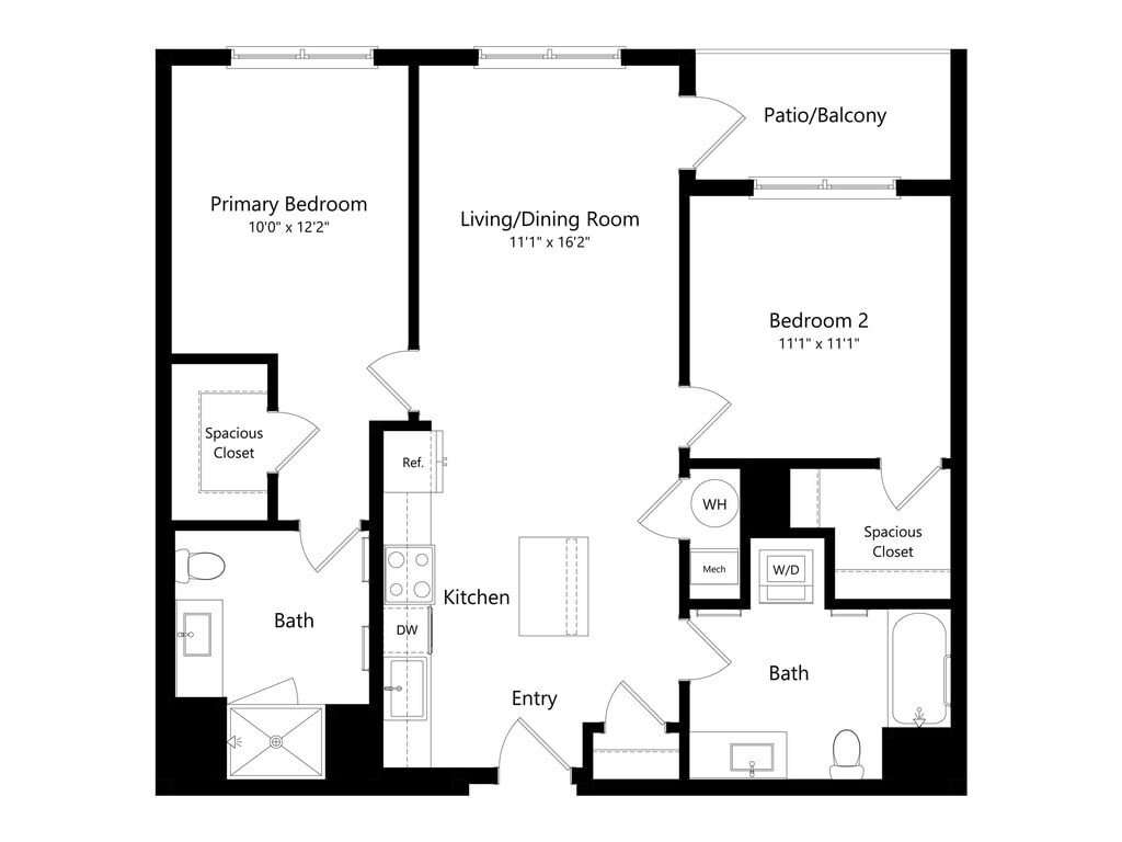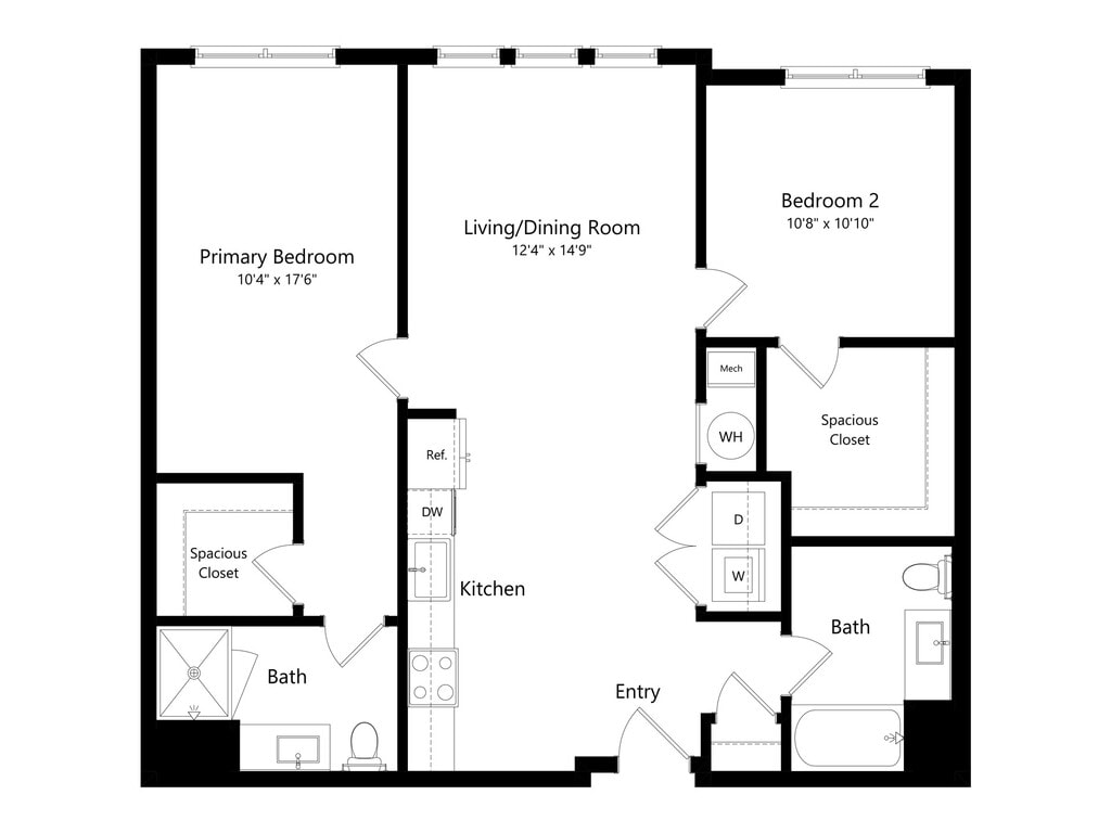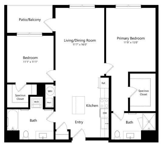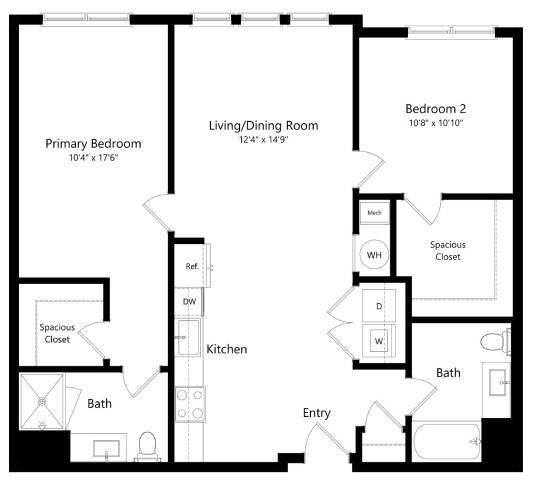 J2 | 1 Bed | 1 Bath | Junior - Plano 1 Los planos de la planta son una interpretación artística. Todas las dimensiones son aproximadas. Los tamaños o el detalle del producto real y sus especificaciones pueden variar. No todas las características están disponibles en todos los hogares para rentar. Los precios y la disponibilidad están sujetos a cambios. El alquiler que se muestra es mensual. Se pueden aplicar ciertos cargos, por ejemplo, entrega de paquetes, recolección de basura, agua, servicios, etc. Depositos varian. Consulta a un representante para conocer detalles.