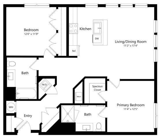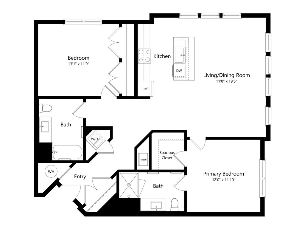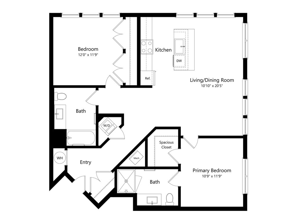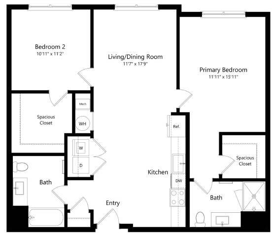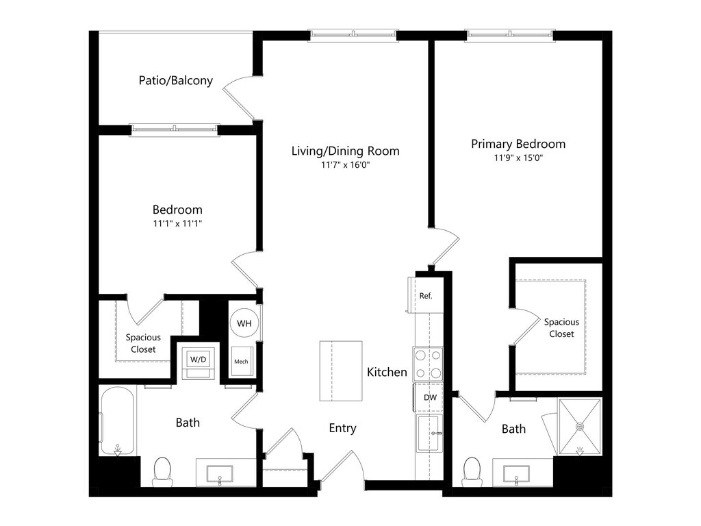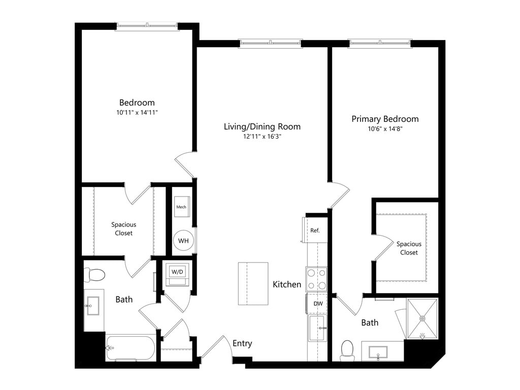 J2 | 1 Bed | 1 Bath | Junior - Plano 1 Los planos de la planta son una interpretación artística. Todas las dimensiones son aproximadas. Los tamaños o el detalle del producto real y sus especificaciones pueden variar. No todas las características están disponibles en todos los hogares para rentar. Los precios y la disponibilidad están sujetos a cambios. El alquiler que se muestra es mensual. Se pueden aplicar ciertos cargos, por ejemplo, entrega de paquetes, recolección de basura, agua, servicios, etc. Depositos varian. Consulta a un representante para conocer detalles.