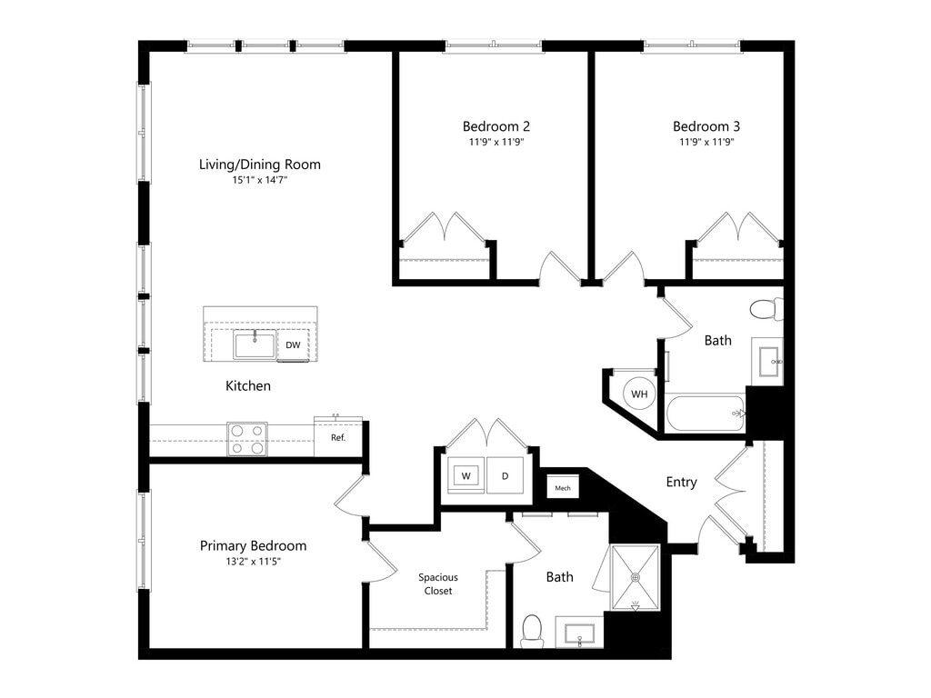 1 Dormitorio, 1 Baño, 761 pies²Disponible AhoraGalería del Modelo