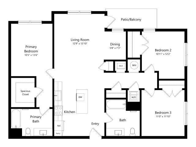 1 Dormitorio, 1 Baño, 822 pies²Precio Mensual TotalDisponible AhoraGalería del Modelo