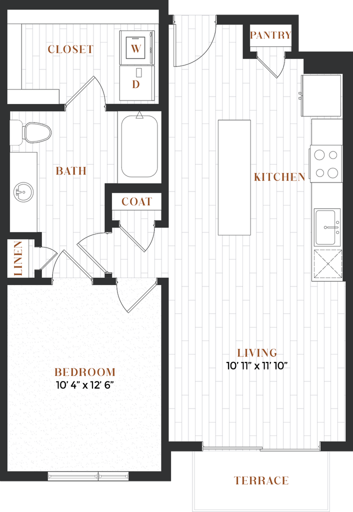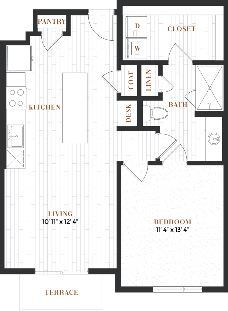 Estudio, 1 Baño, 579 pies²Disponible AhoraGalería del Modelo