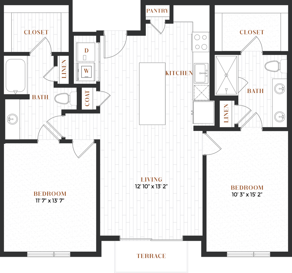 1 Dormitorio, 1 Baño, 722 pies²Disponible AhoraGalería del Modelo