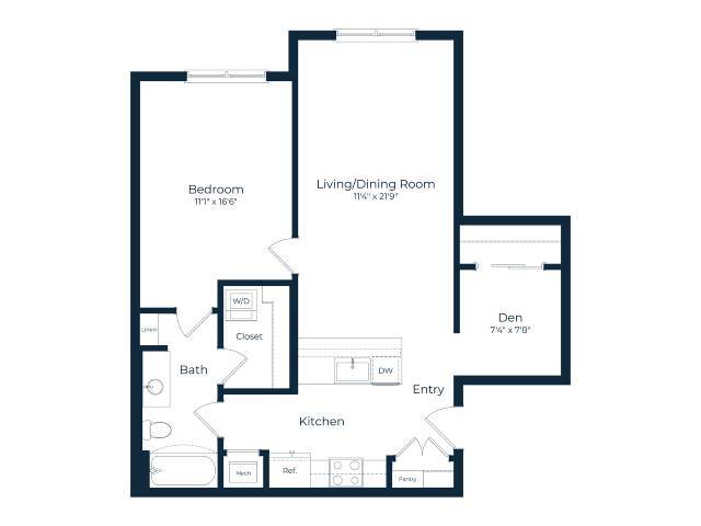 1 Dormitorio, 1 Baño, 903 pies²Disponible AhoraEl más grandeEsta opción tiene las unidades más grandes para este modeloGalería del Modelo