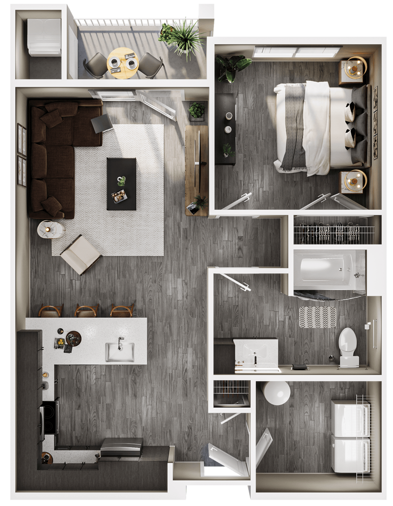 1 Dormitorio, 1 Baño, 824 pies²Disponible AhoraGalería del Modelo