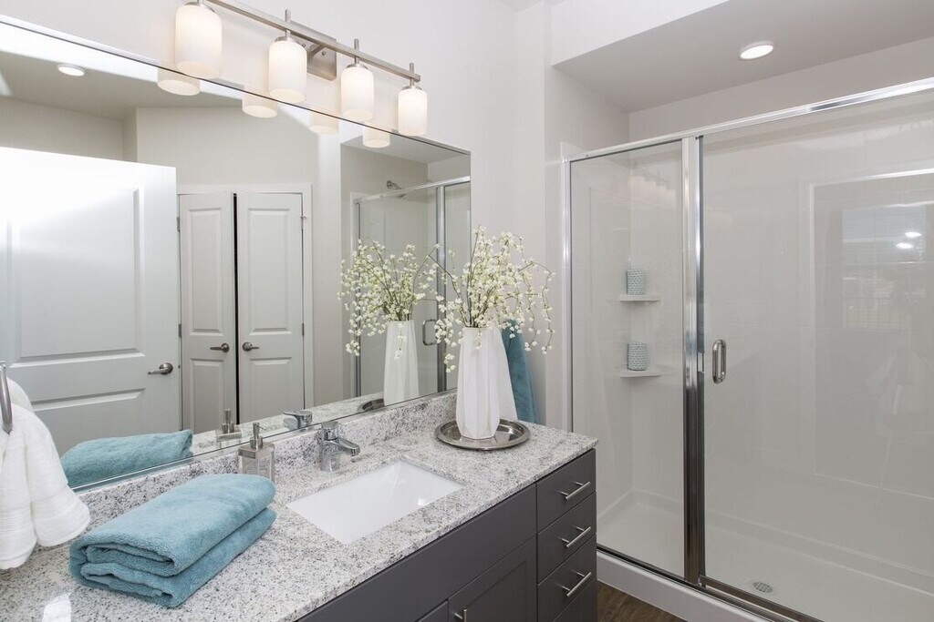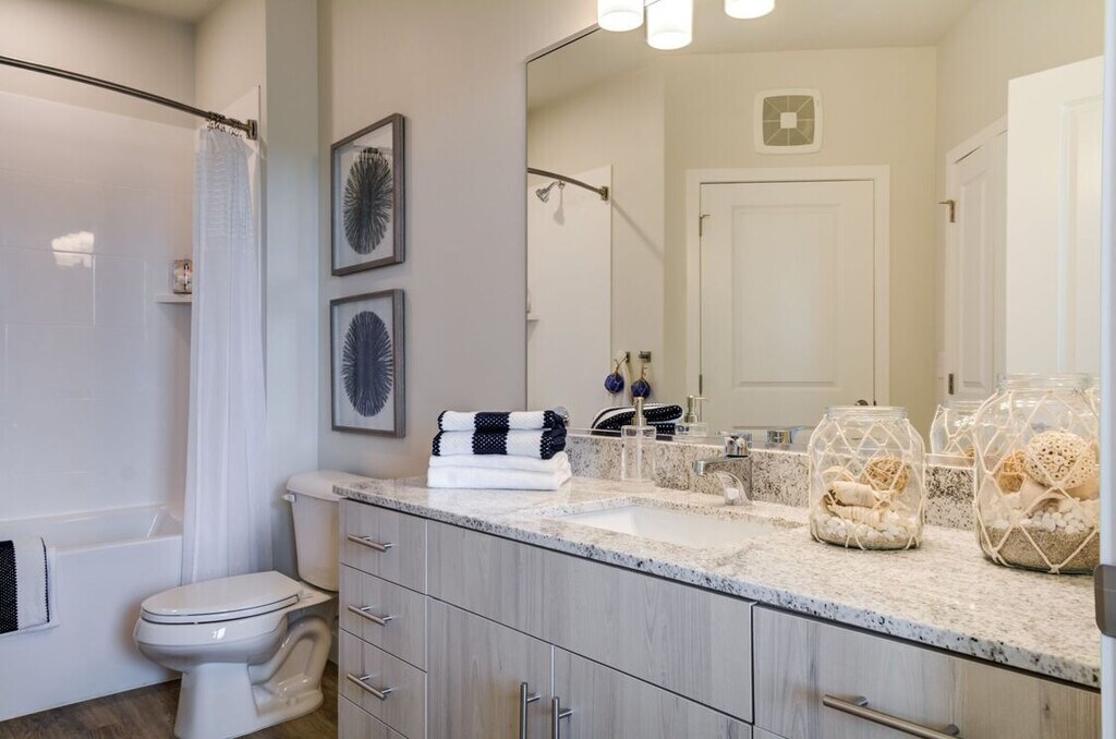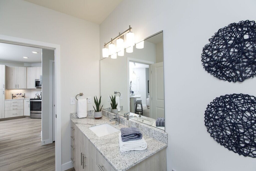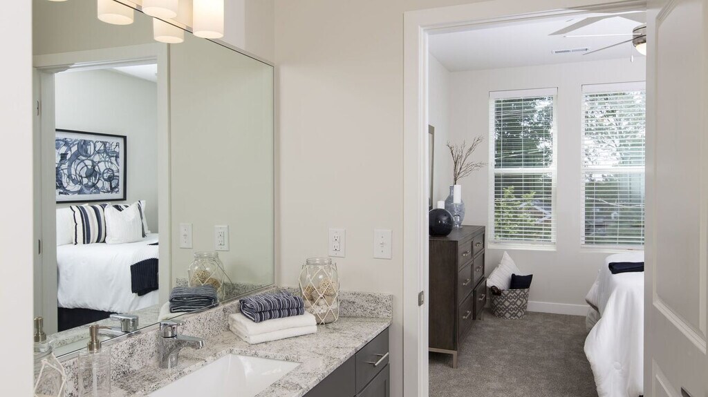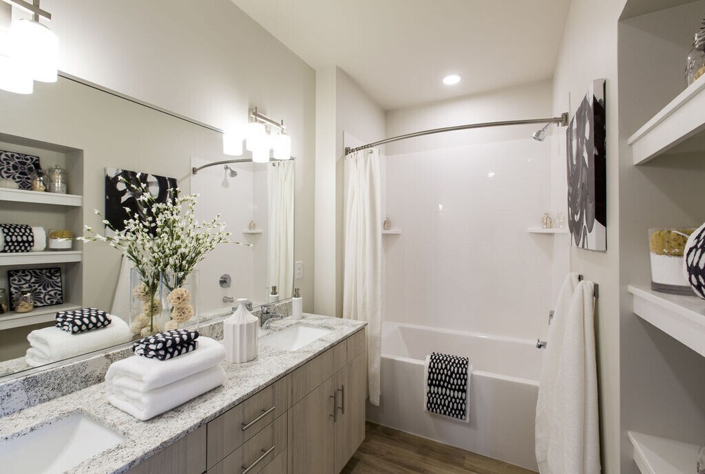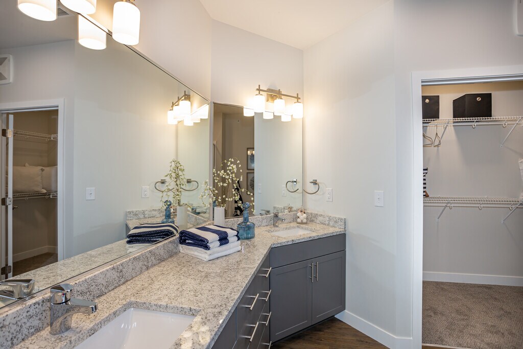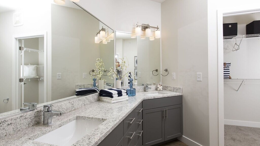 - Tocadores con encimeras de granito y lavabos de montaje inferior