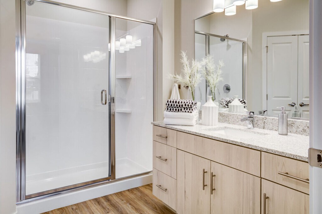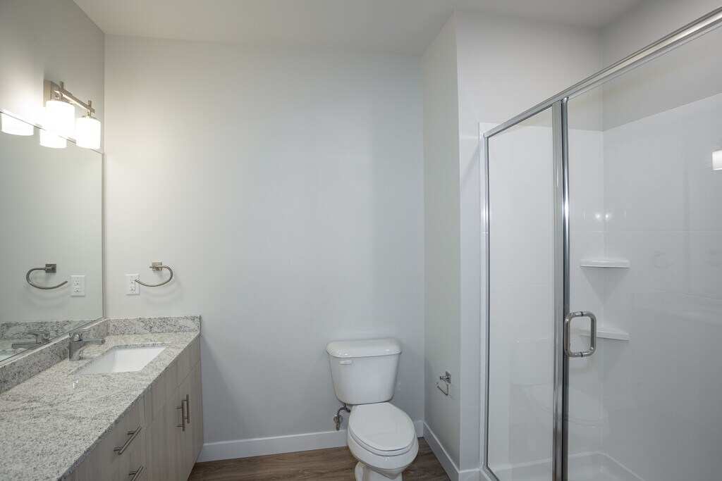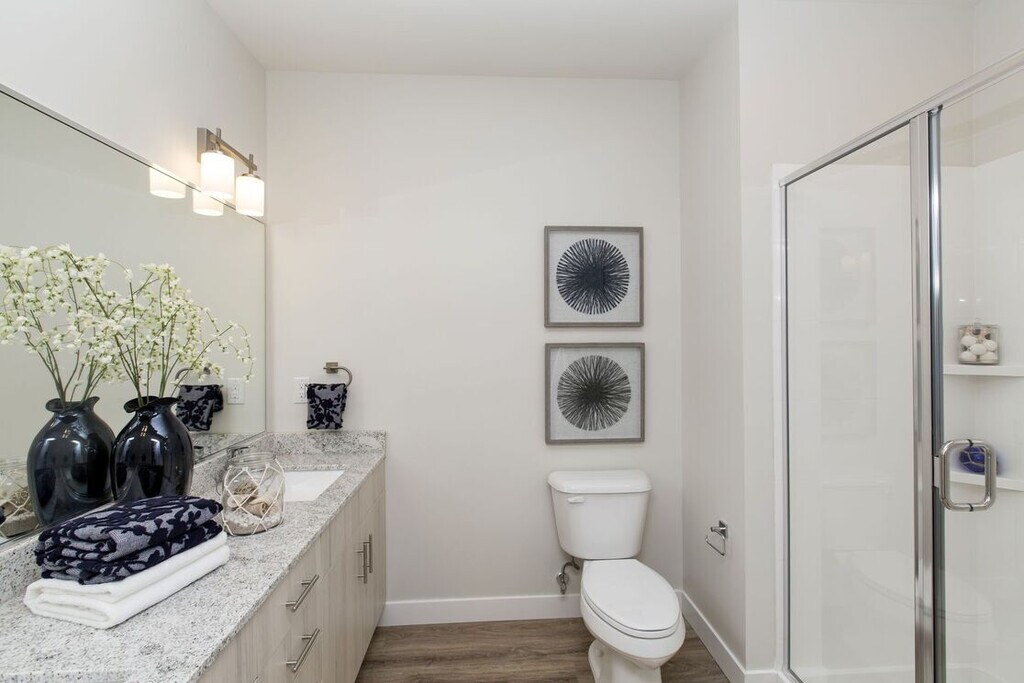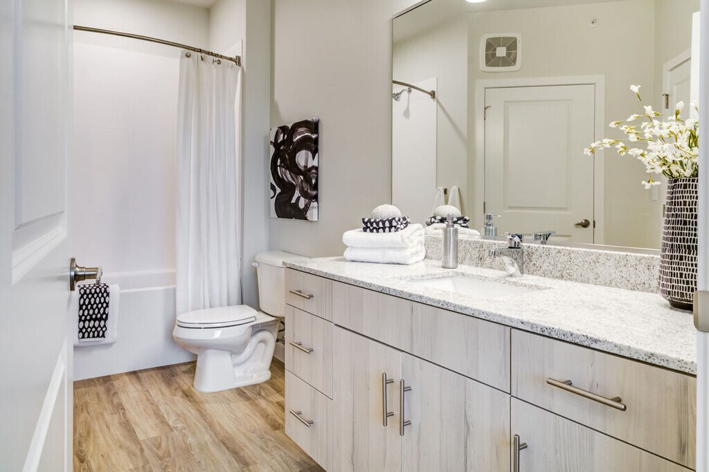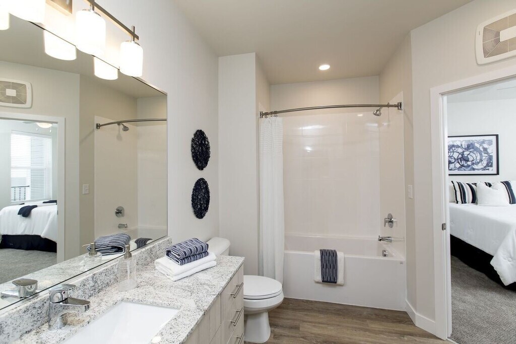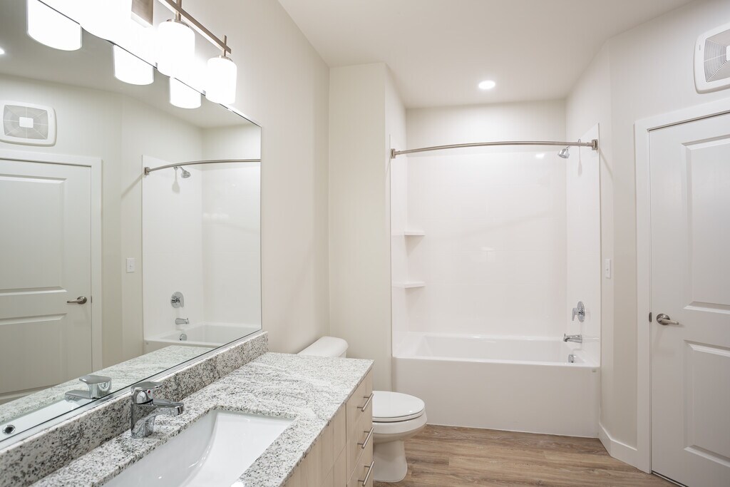 - Tocadores con encimeras de granito y lavabos de montaje inferior