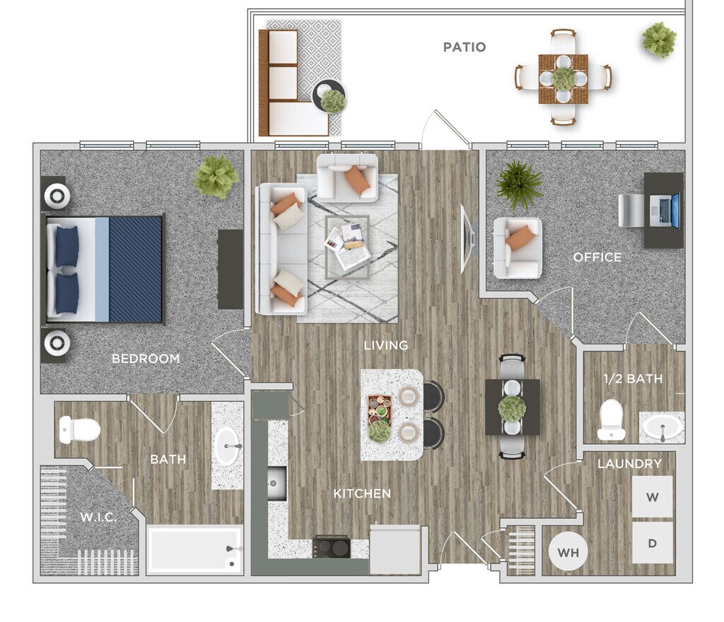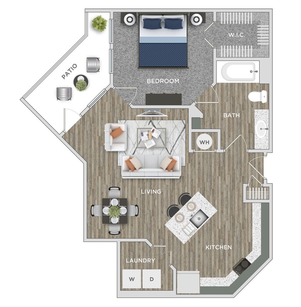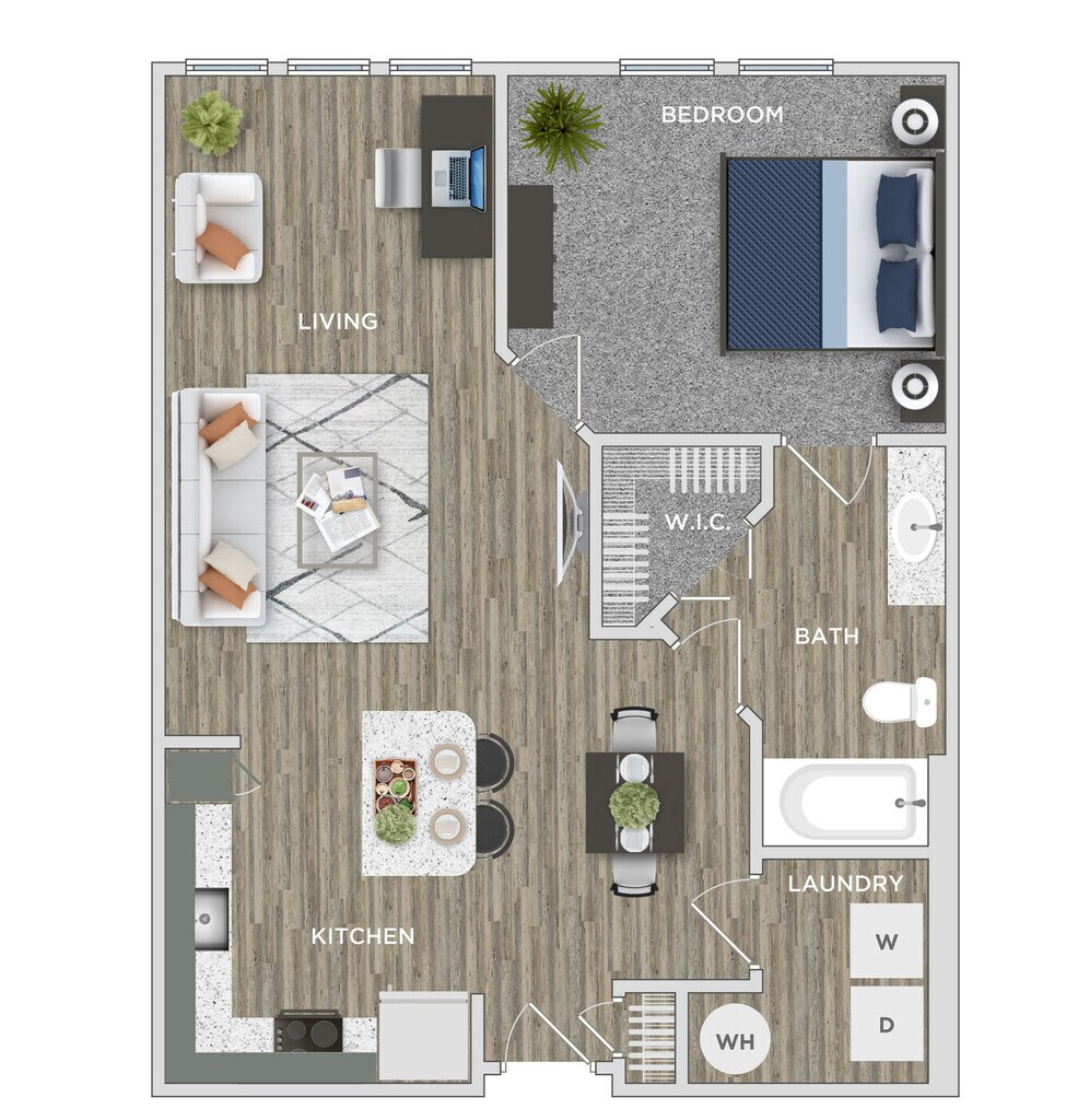 Modelo de apartamento: BellevueDesde $1,9061 Dormitorio, 1 Baño, 702 sq ftDisponible Ahora![]()