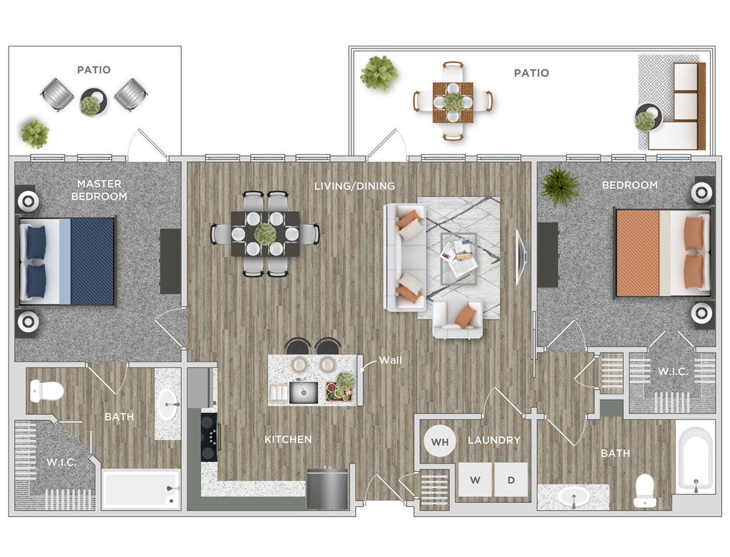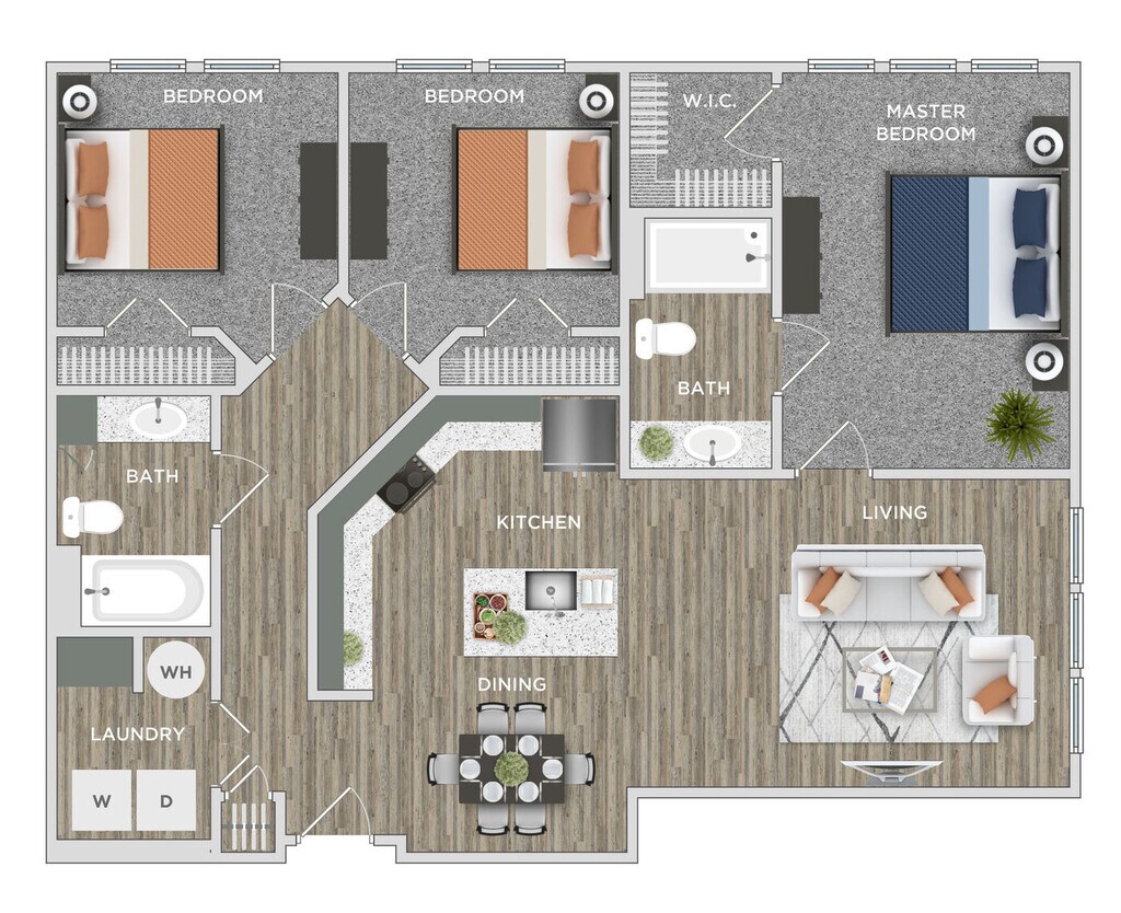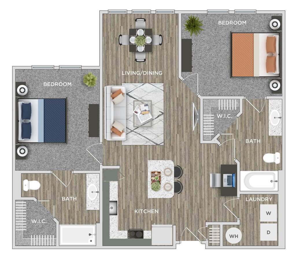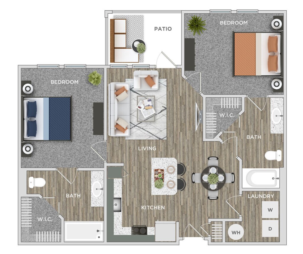 Modelo de apartamento: BellevueDesde $1,9061 Dormitorio, 1 Baño, 702 sq ftDisponible Ahora![]()