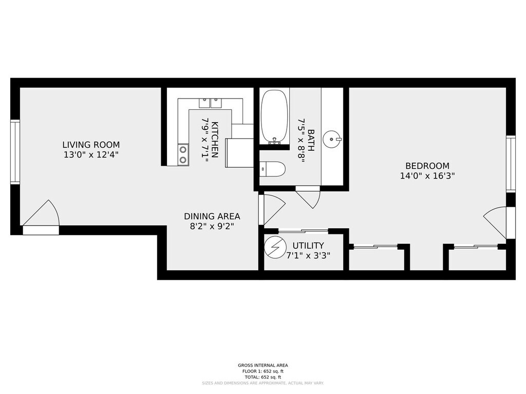 1 Dormitorio, 1 Baño, 652 pies²Galería del Modelo