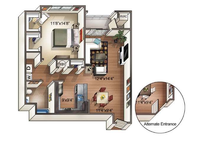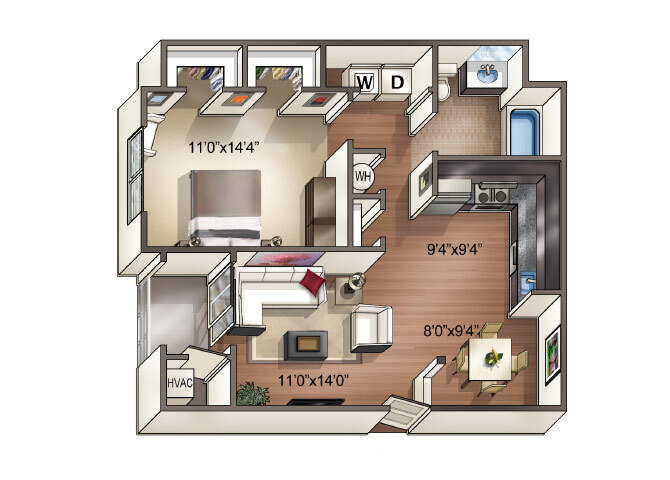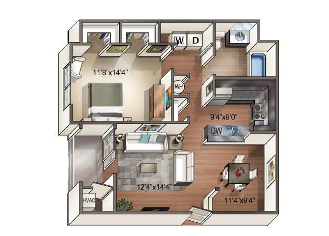 1 Dormitorio, 1 Baño, 820-860 pies²El más grandeEsta opción tiene las unidades más grandes para este modeloGalería del Modelo