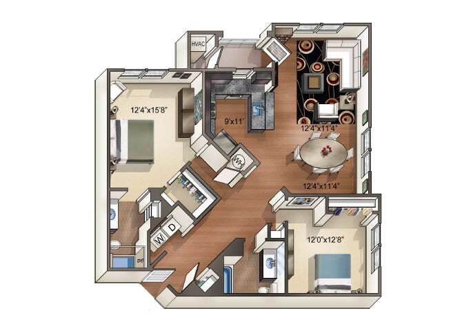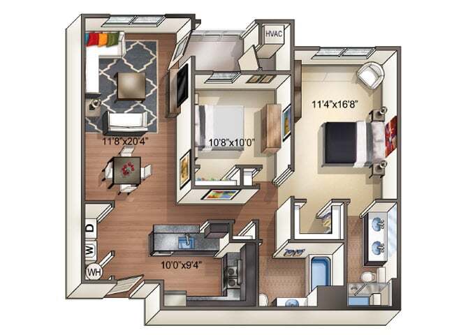 Modelo de apartamento: TrioLlame para Precios1 Dormitorio, 1 Baño, 820-860 sq ftNo DisponibleTrio - Plano 1 Cielo