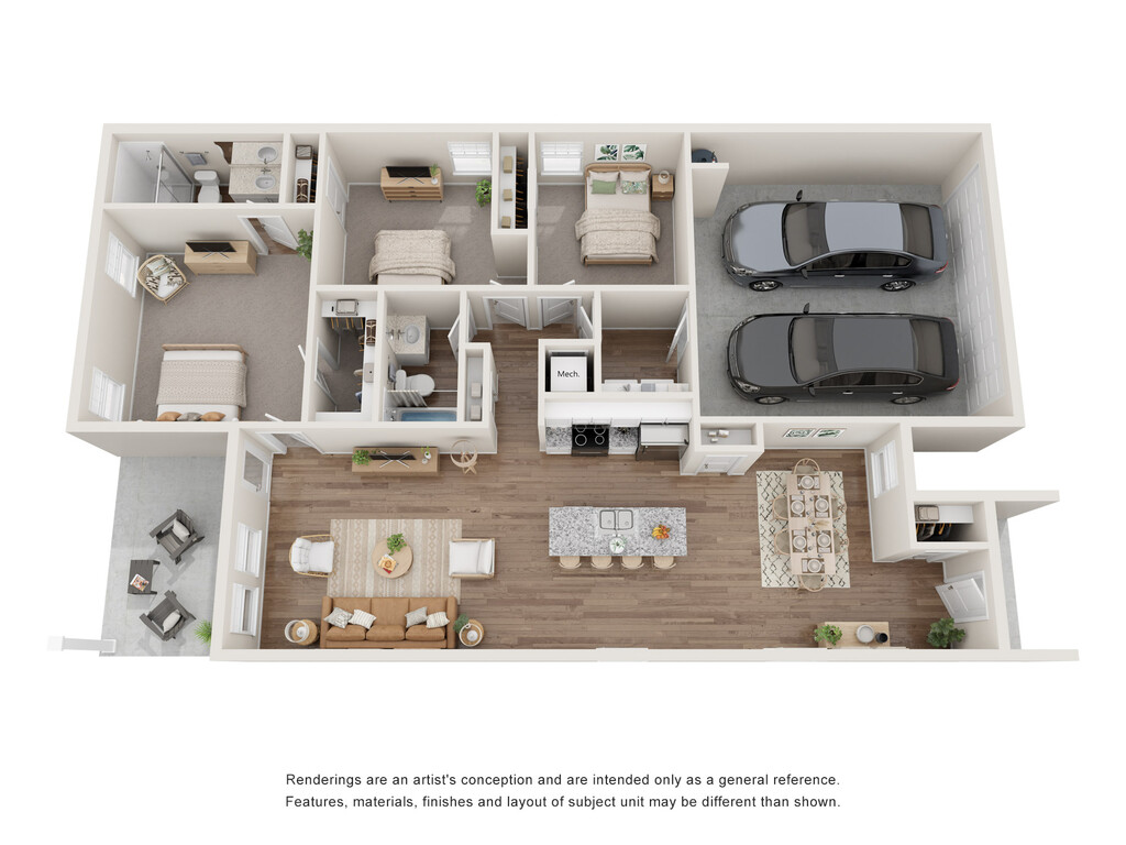 3 Dormitorios, 2 Baños, 1402 pies²Galería del Modelo