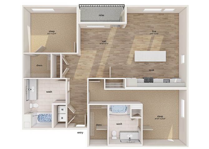 1 Dormitorio, 1 Baño, 772 pies²Disponible AhoraGalería del Modelo