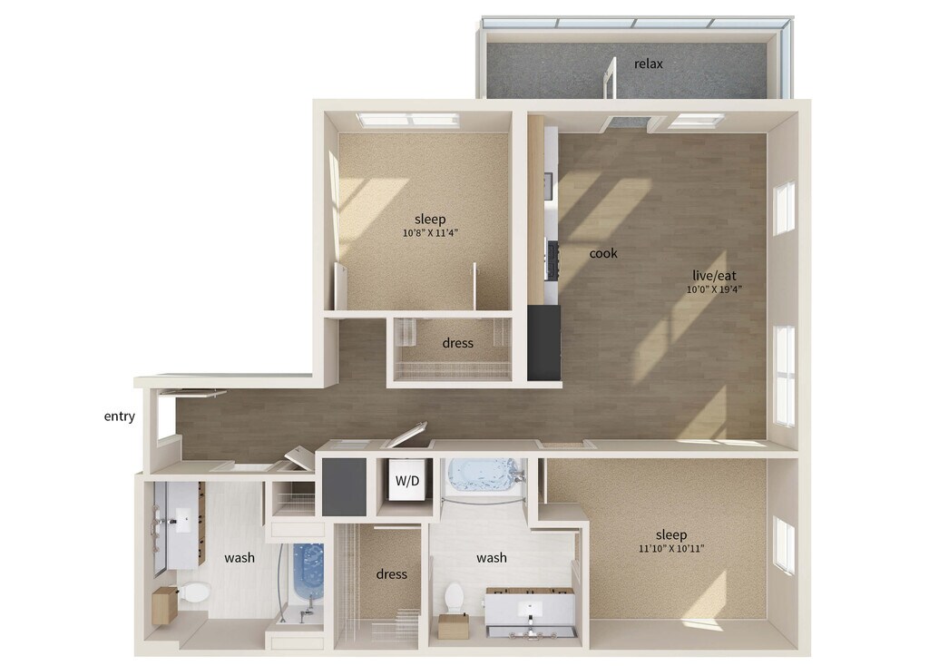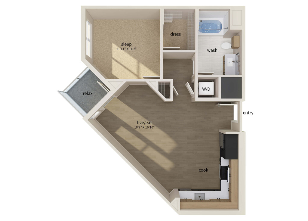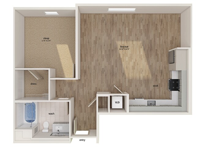 1 Dormitorio, 1 Baño, 829 pies²Disponible AhoraGalería del Modelo