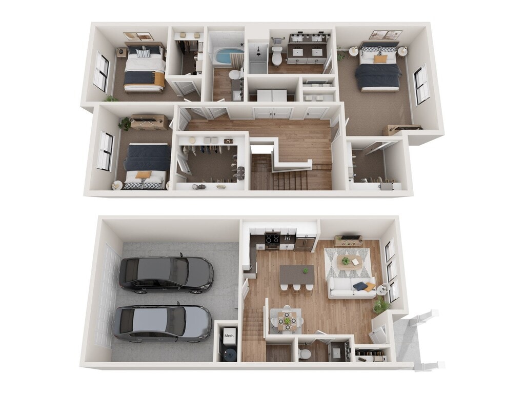 3B- Townhome - Plano 1 Unidad de apartamento: TC-1345EModelo de apartamento: 3B- Townhome$2,3773 Dormitorios, 2 Baños, 1617 sq ftDisponible December 5, 2025