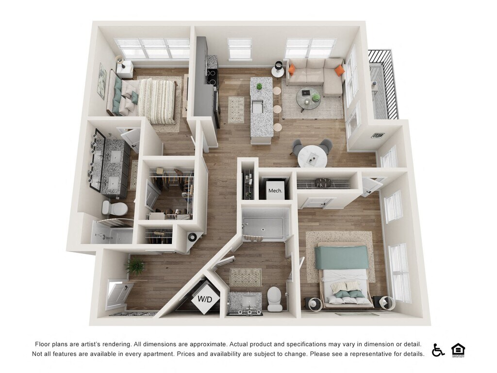 Modelo de apartamento: A2.1$1,3091 Dormitorio, 1 Baño, 675 sq ftDisponible January 13, 2026![]()
