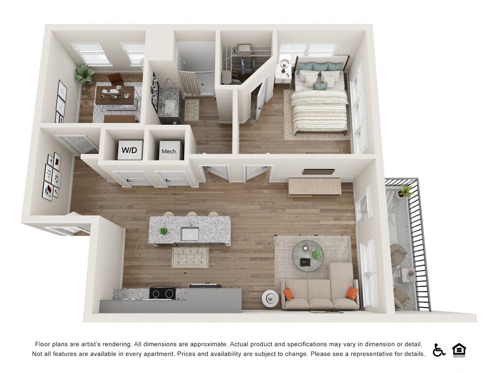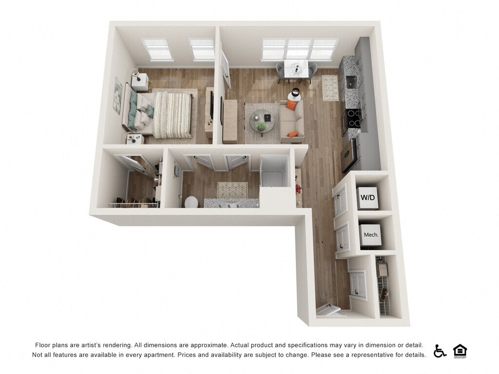 Modelo de apartamento: A1Desde $1,3811 Dormitorio, 1 Baño, 783 sq ftDisponible Ahora![]()
