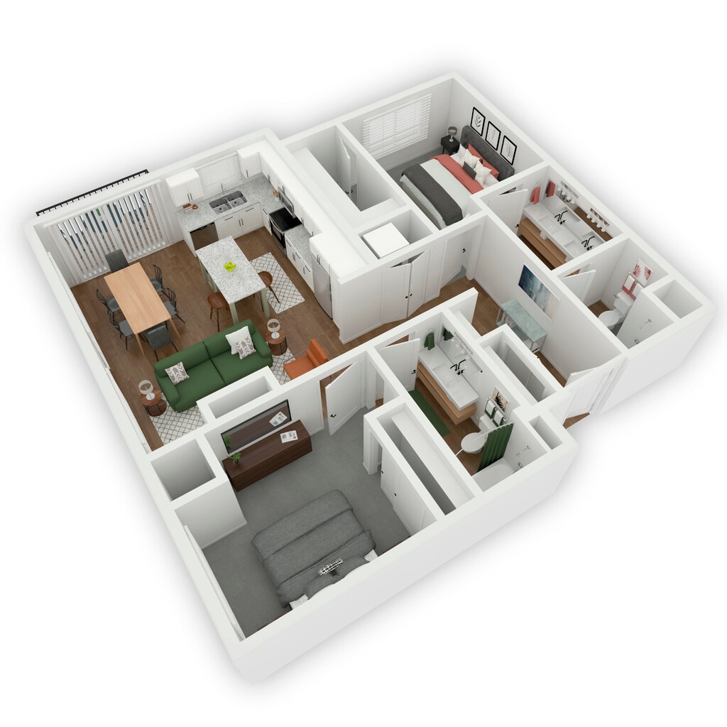 Modelo de apartamento: ApexDesde $1,5351 Dormitorio, 1 Baño, 614 sq ftDisponible December 22, 2025![]()