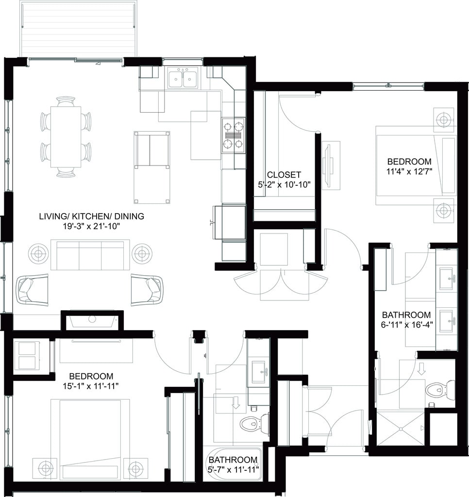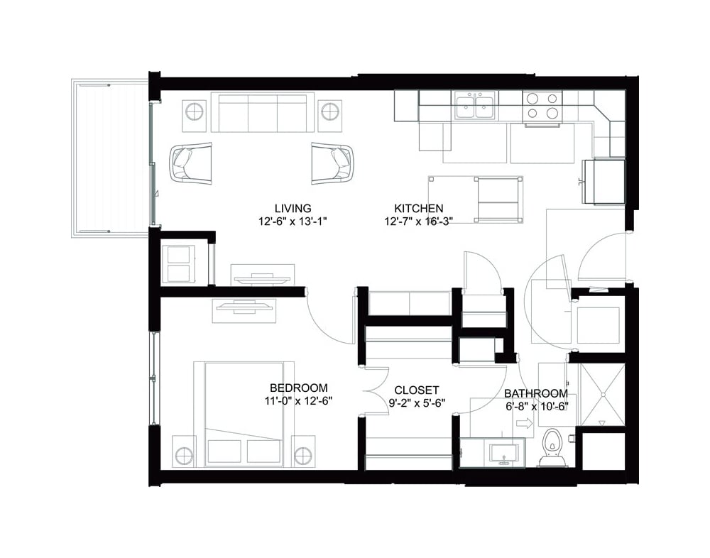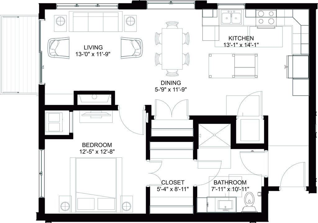 1 Dormitorio, 1 Baño, 761 pies²Más CargosDisponible AhoraGalería del Modelo
