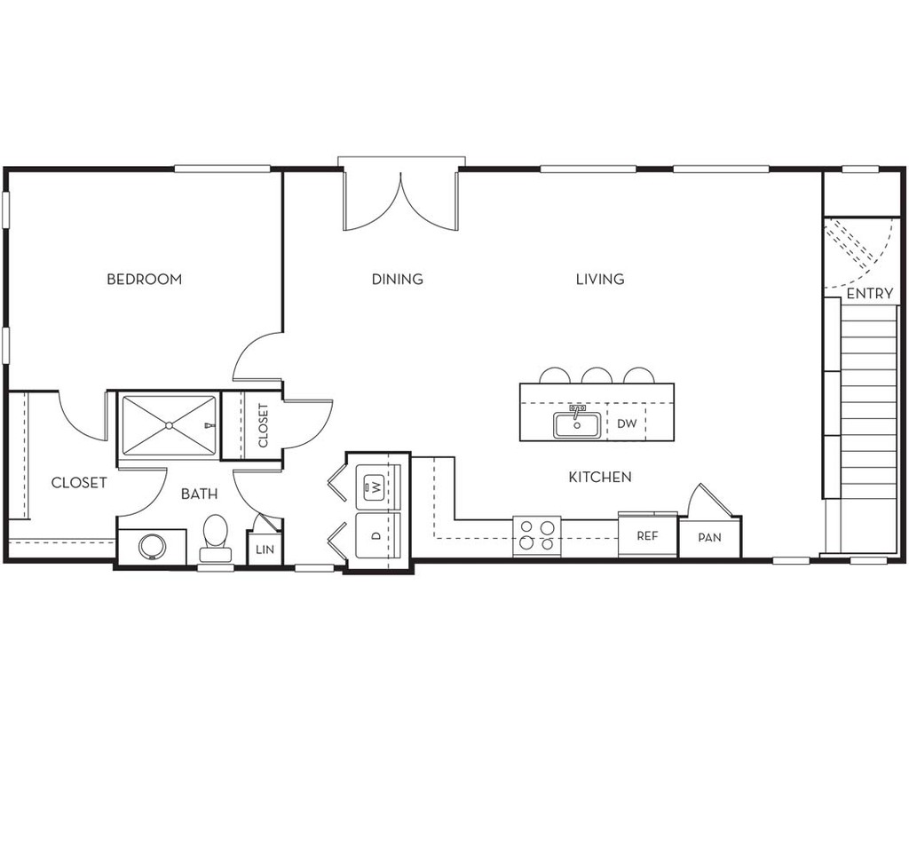 1 Dormitorio, 1 Baño, 781-828 pies²Disponible AhoraGalería del Modelo