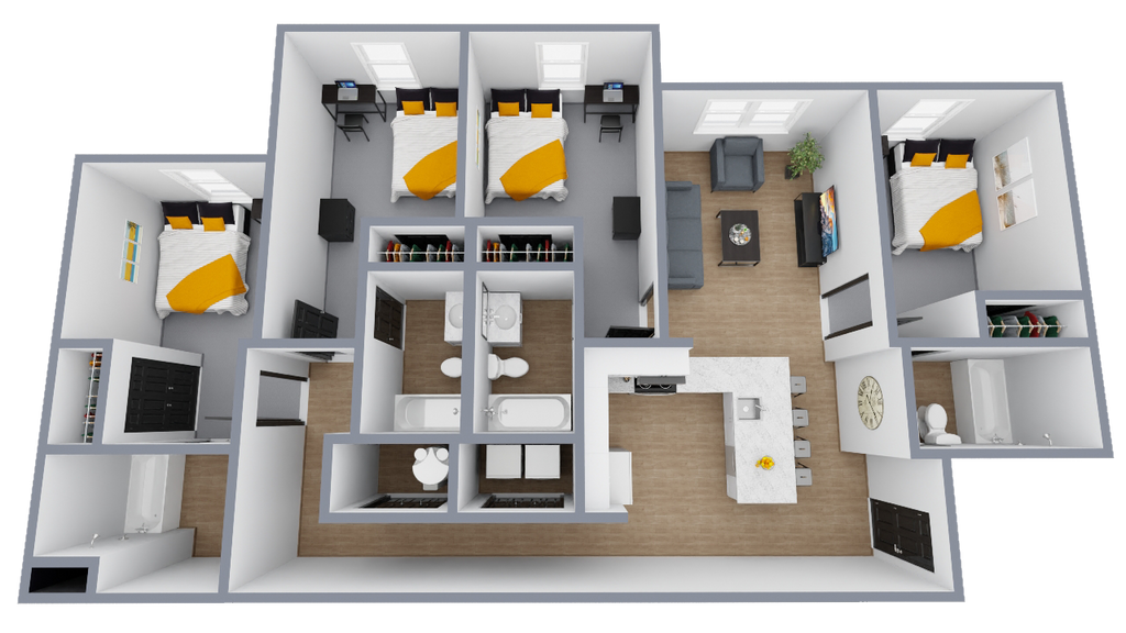 4 Dormitorios, 4 Baños, 375 pies²El más grandeEsta opción tiene las unidades más grandes para este modeloGalería del Modelo