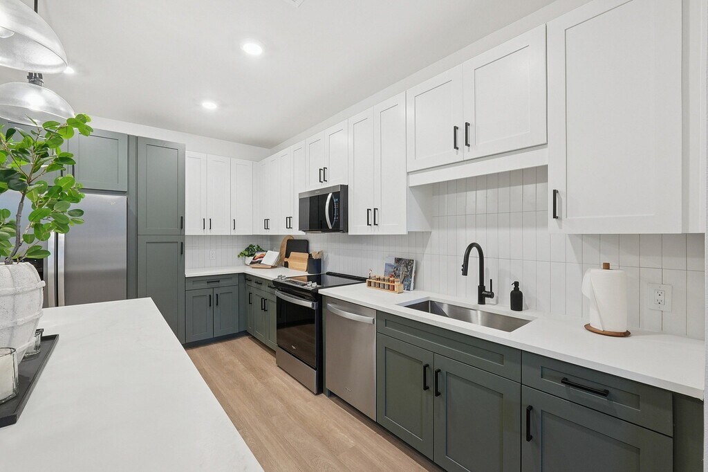 - Salpicadero de azulejos de diseño y encimeras de cuarzo