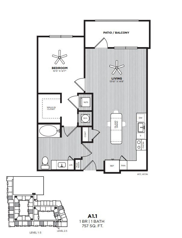 Modelo de apartamento: S1.1Desde $1,281Estudio, 1 Baño, 625 sq ftDisponible Ahora![]()
