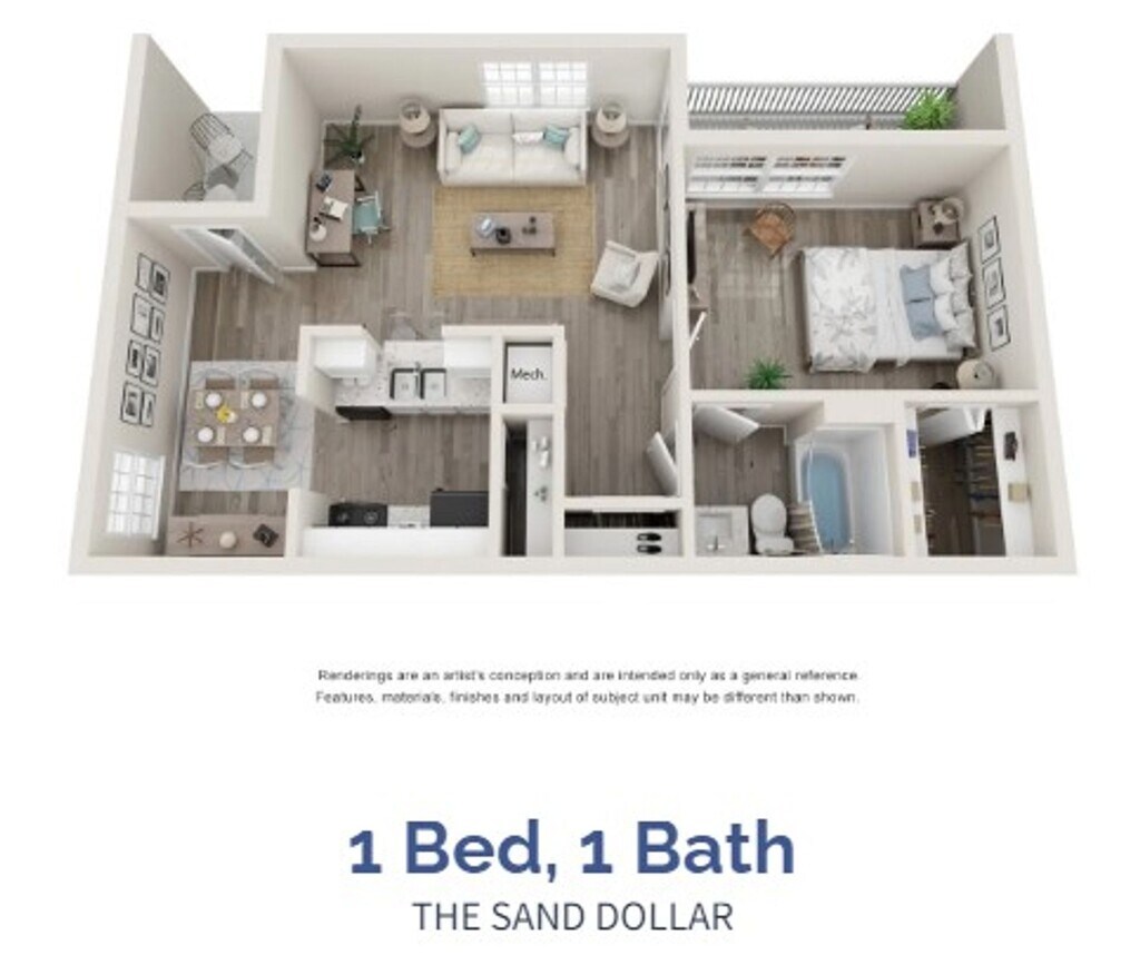 Modelo de apartamento: 643 sqft, 1x1, Sand Dollar, Premium$1,4501 Dormitorio, 1 Baño, 643 sq ftDisponible AhoraPlanosFotos![]()