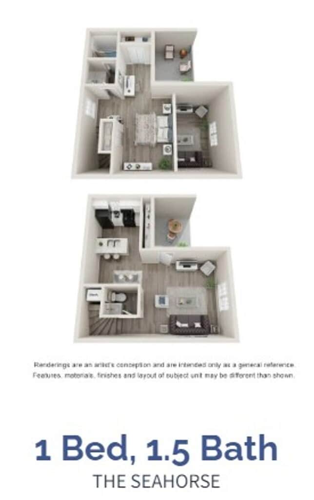 Modelo de apartamento: 778 sqft, 1x1.5, Sea Horse (Loft), EliteDesde $1,4451 Dormitorio, 1.5 Baños, 778 sq ftDisponible Ahora![]()