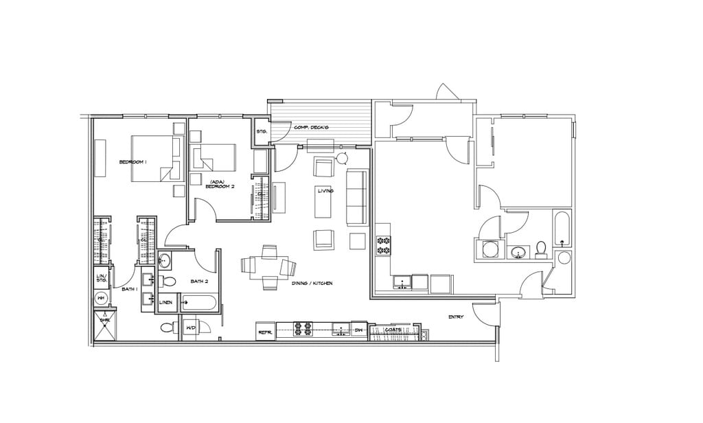 2 Dormitorios, 2 Baños, 1086 pies²Disponible AhoraGalería del Modelo