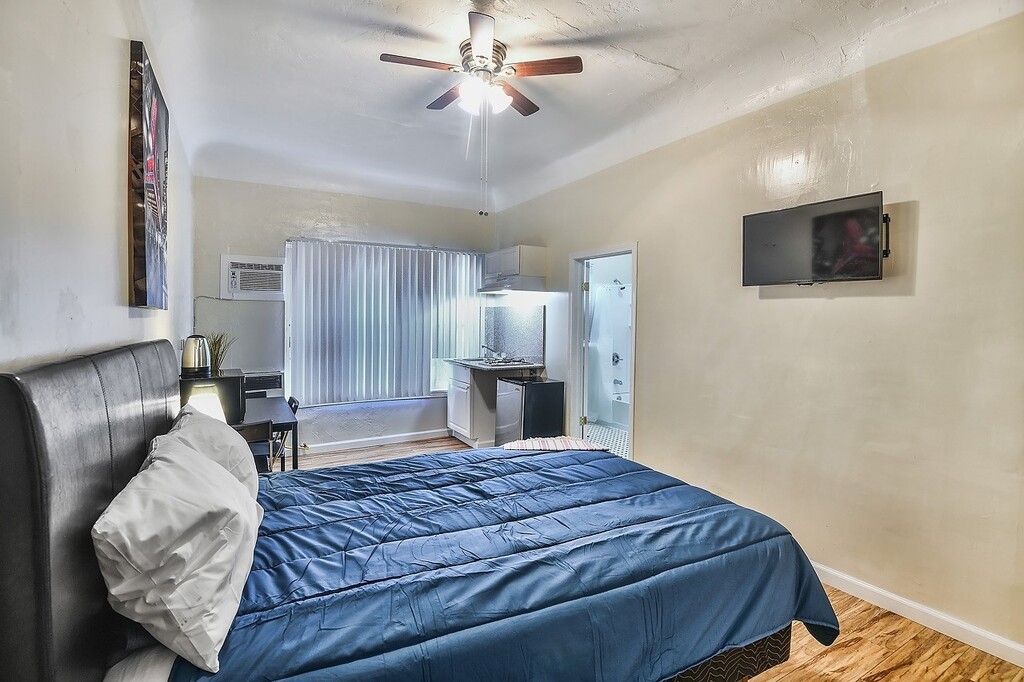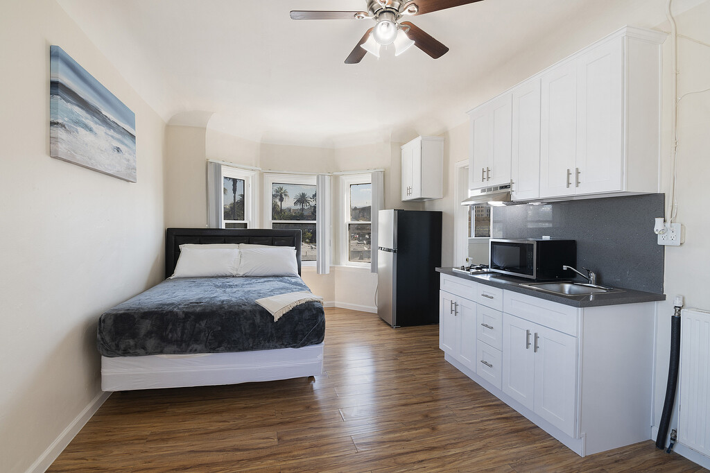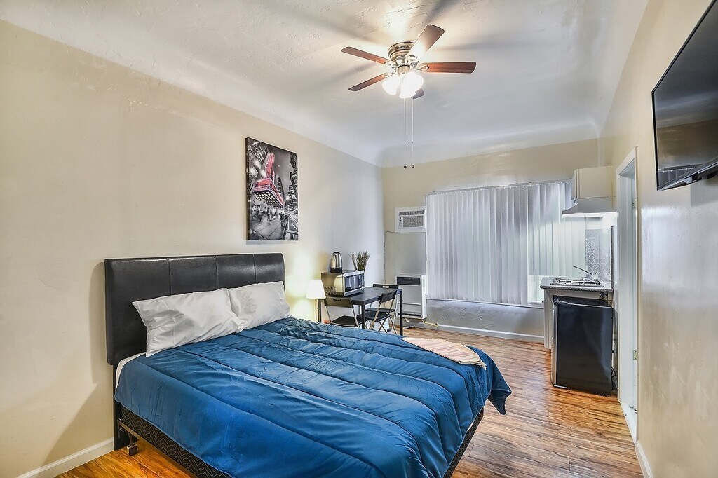 Welcome to our fully furnished studio apartment in the heart of Los Angeles! This cozy space features laminate flooring, a spacious closet, and a ceiling fan to keep you comfortable year-round. The kitchenette is perfect for whipping up quick meals, and the vertical blinds provide privacy when needed. With 24-hour maintenance and the convenience of online payment options, you can rest easy knowing your needs will be taken care of promptly. Don't miss out on this move-in ready studio - schedule a tour today!