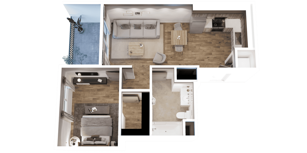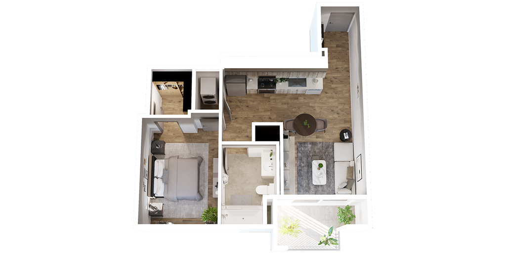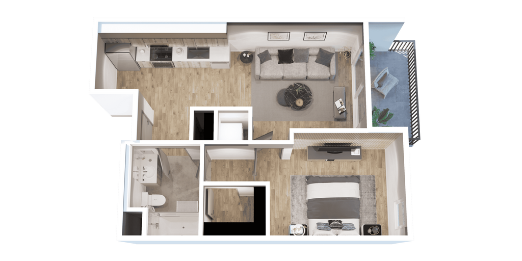 1 Dormitorio, 1 Baño, 587 pies²Disponible AhoraGalería del Modelo