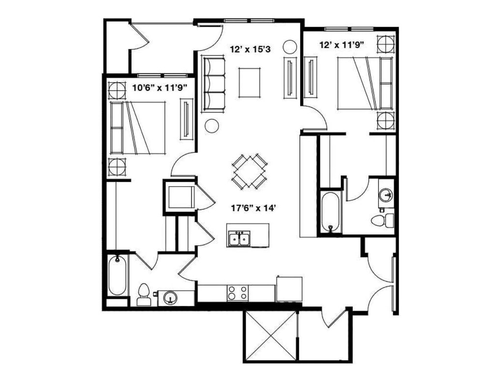 1x1 F - Plano Unidad de apartamento: 319Modelo de apartamento: 1x1 F$1,3791 Dormitorio, 1 Baño, 730 sq ftDisponible May 20, 20262 Dormitorios