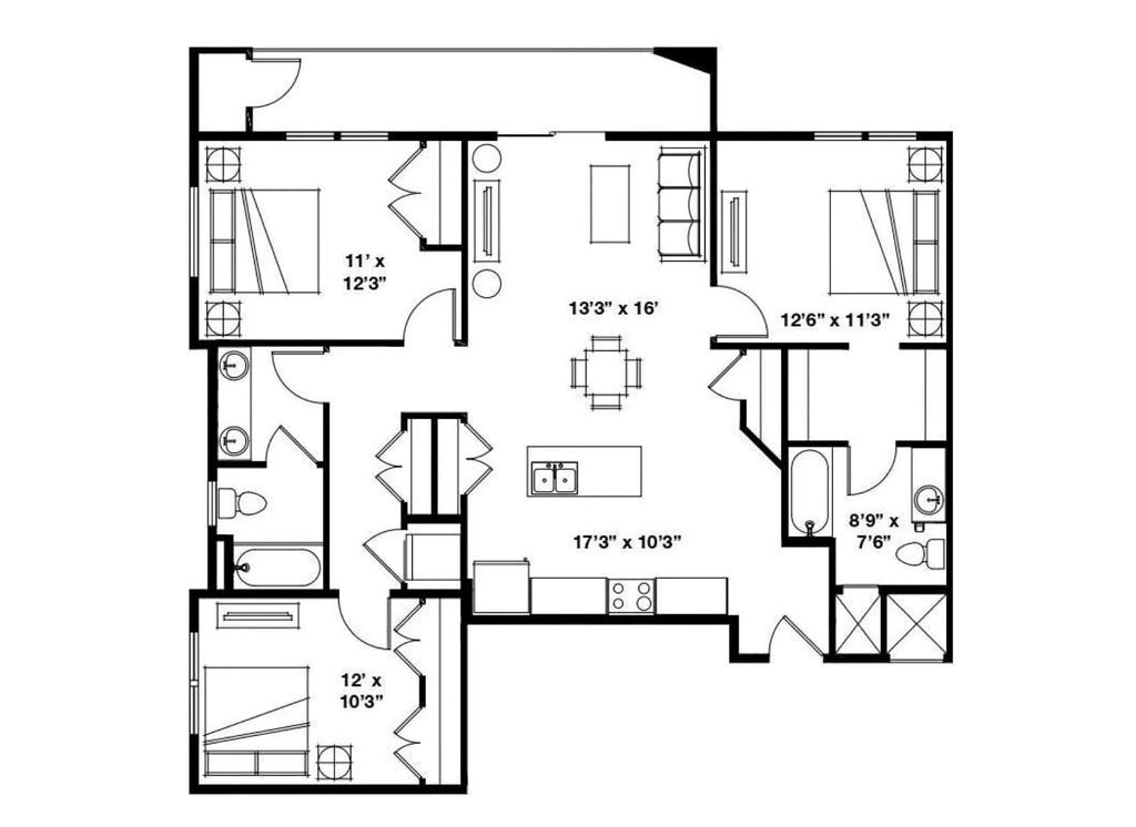 1 Dormitorio, 1 Baño, 730 pies²Disponible May 20El más grandeEsta opción tiene las unidades más grandes para este modeloGalería del Modelo