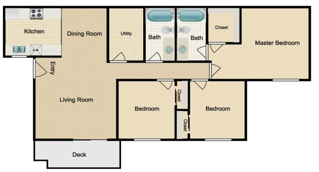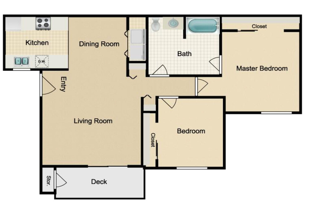 Modelo de apartamento: Lakeside2 Dormitorios, 1 Baño, 800 sq ftDisponible Ahora![]()