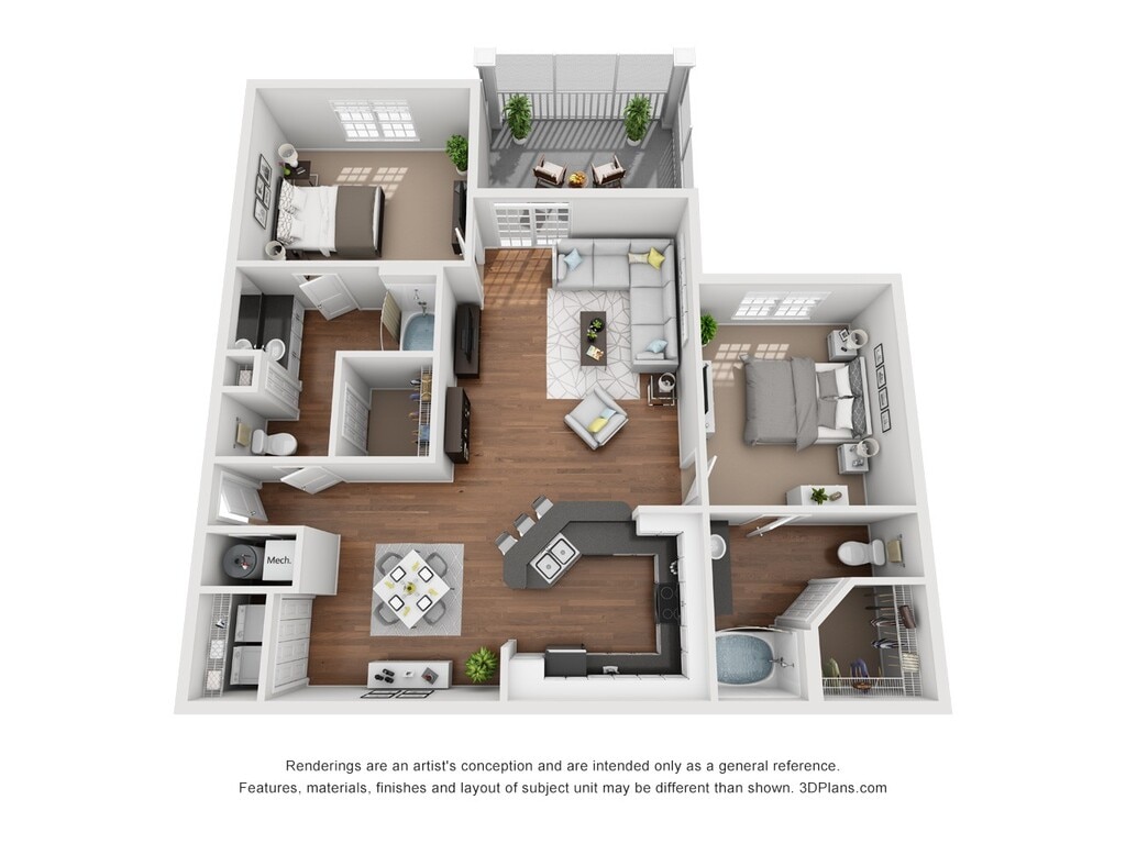 1 Dormitorio, 1 Baño, 759 pies²Disponible AhoraGalería del Modelo