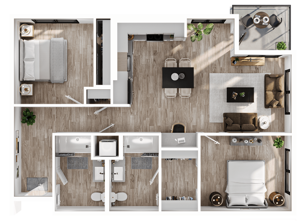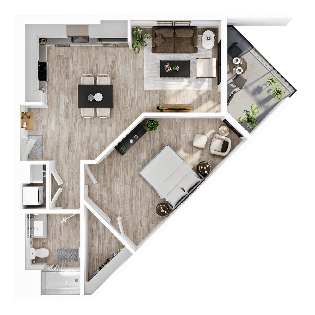 1 Dormitorio, 1 Baño, 767 pies²Disponible AhoraGalería del Modelo