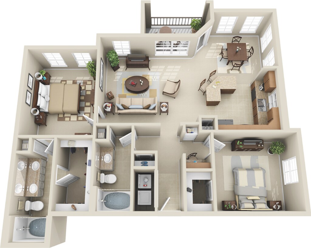 - Apartamentos espaciosos de 1, 2 y 3 habitaciones
