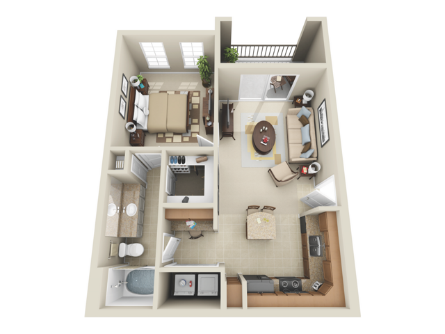 1 Dormitorio, 1 Baño, 773 pies²Disponible AhoraGalería del Modelo