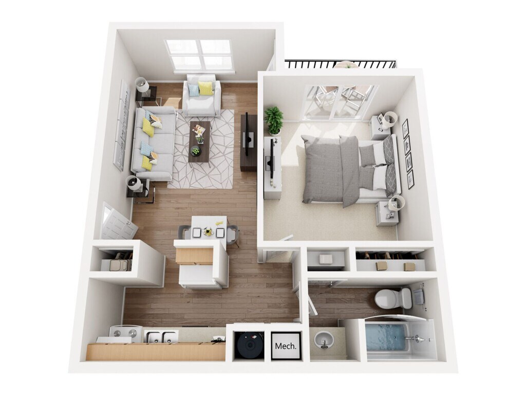 1 Dormitorio, 1 Baño, 600 pies²Disponible AhoraGalería del Modelo