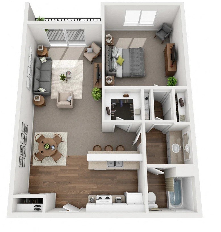 1 Dormitorio, 1 Baño, 667-883 pies²Disponible AhoraGalería del Modelo